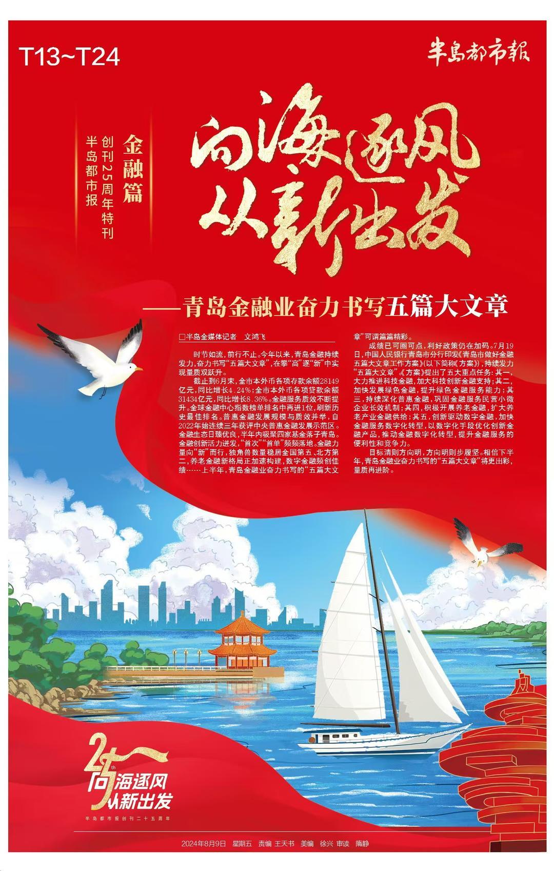 时节如流,前行不止。今年以来,青岛金融持续发力,奋力书写“五篇大文章”,在攀“高”逐“新”中实现量质双跃升。