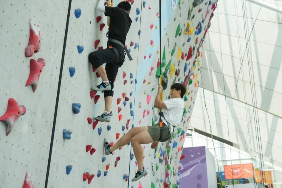 “攀岩是一项高危运动,我们为前来体验的市民购买了保险。60位体验的市民分为4场,每场可体验一个半小时。此外,现场的每一条攀岩赛道,都由一名教练保护和指导。“上海久事体育产业发展(集团)有限公司东体场馆分公司公共体育部副经理陈哲华介绍,8月8日东体推出以“运潮围沃,富国强民”为主题的公众免费开放活动,游泳、篮球、羽毛球、乒乓球、网球、足球、桨板、轮滑、飞盘、攀岩等10个项目推出免费名额。8月7号中午12点预约通道开启后,攀岩、桨板、羽毛球等热门项目名额被“秒空”,充分证明了市民对多元化体育活动的需求与热情。攀岩、轮滑、桨板等项目还安排教练指导,让市民在挑战自我中体验极限运动的魅力。
