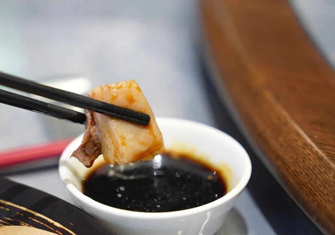 经过三个小时的炖煮,当底汤熬成乳白色,一锅热气羊肉便成了。趁热将羊肉捞出、拆骨,切成长条块,整齐地码放在盘中,再调制一小碟蘸料,便可端上餐桌。当然,将羊肉整块冷藏一晚后切片,即可作为白切羊肉;取原汤加以配料炖煮羊肉,即可得到清炖羊肉汤。