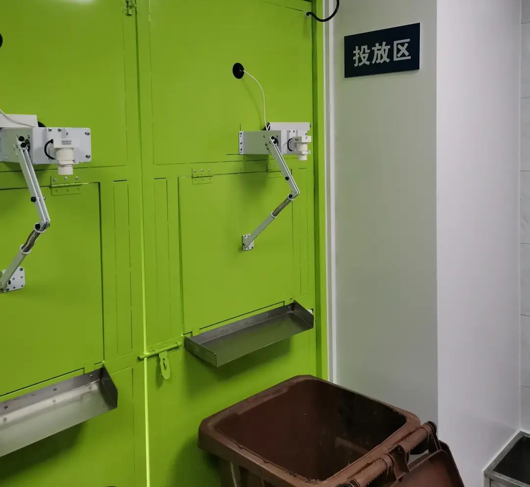 此外,箱房内还设置了烟感报警装置、自动除异味喷淋和新风系统。这些应用场景都接入了街道的“一网统管”平台,实现了“发现、派单、整改、销项”的闭环管理机制,大大提高了垃圾分类的时效性。