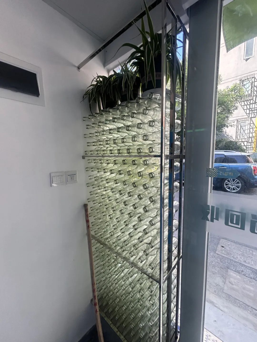 记者看到,为了践行绿色低碳新风尚,服务点的外墙装饰还巧妙地利用了可回收物——酒瓶,既美观又实用。