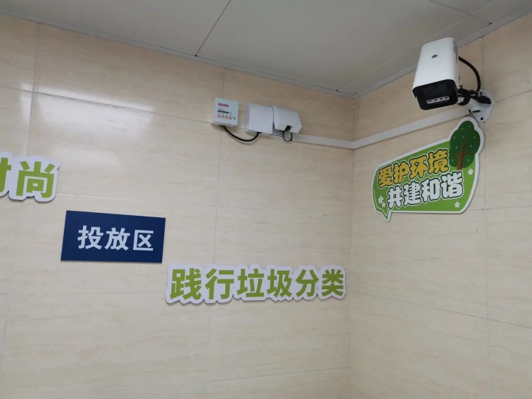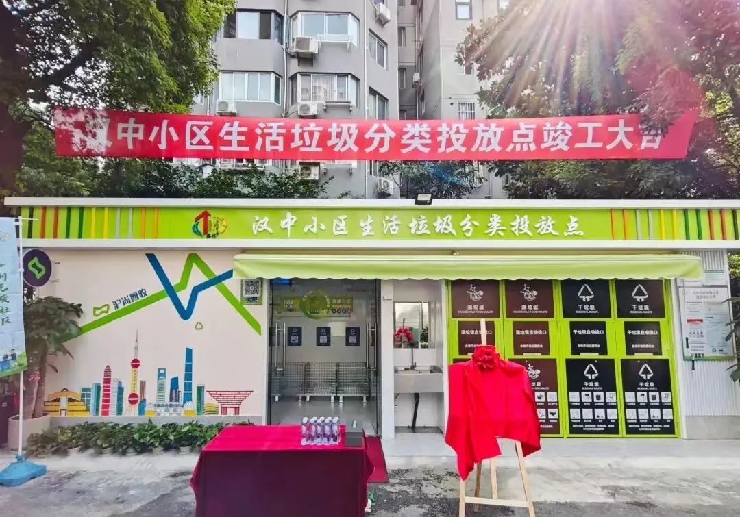 早在2018年,汉中小区就建成了全市第一座智能垃圾箱房,集身份识别、信息屏幕、端口扫描、监控摄像、移动网络等多功能于一体,顶部覆盖着绿植,并配备了热水洗手池和彩色投放口。