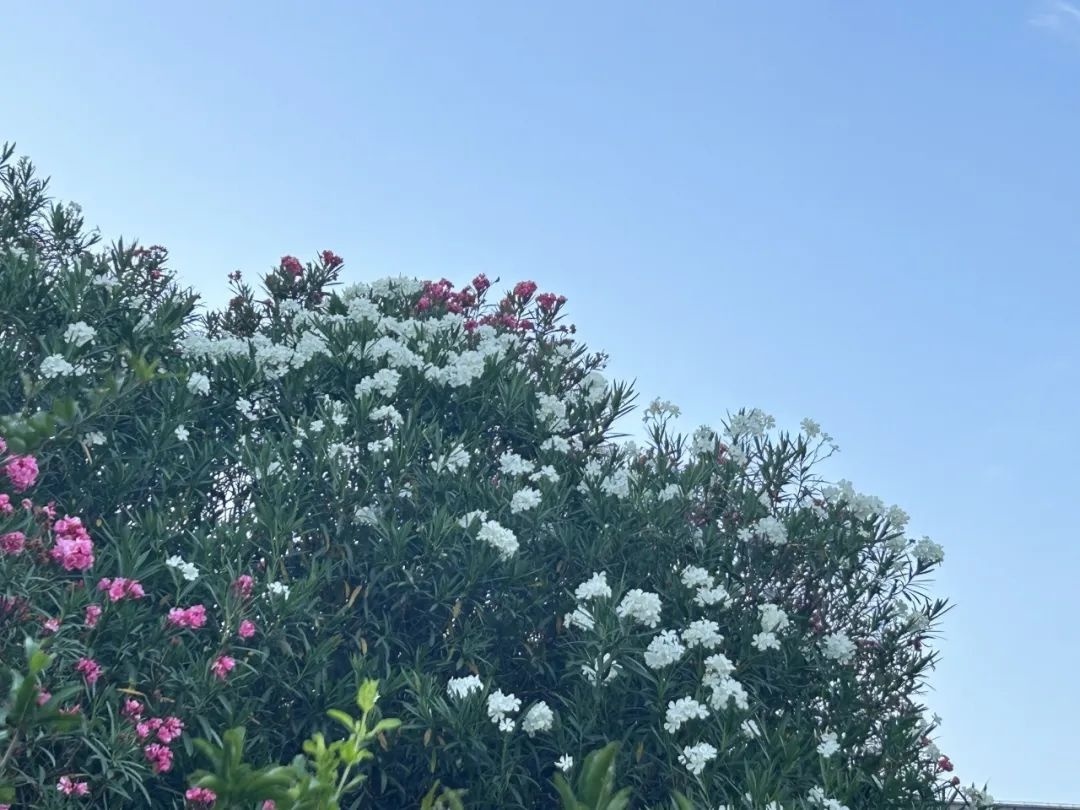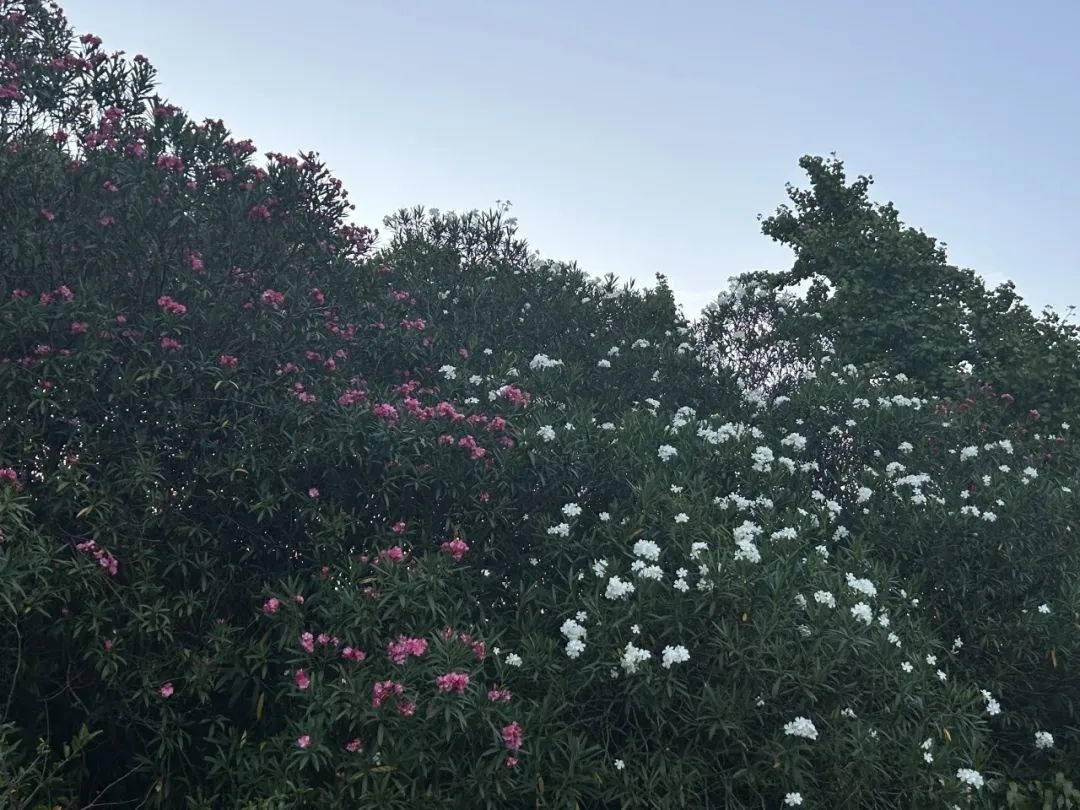 眼下,公园、道路旁或河道边还能看到一簇簇盛开的夹竹桃。夹竹桃具有抗烟雾、抗灰尘、抗毒物和净化空气的能力,即使全身落满灰尘,仍能旺盛生长,被人们称为“环保卫士”。