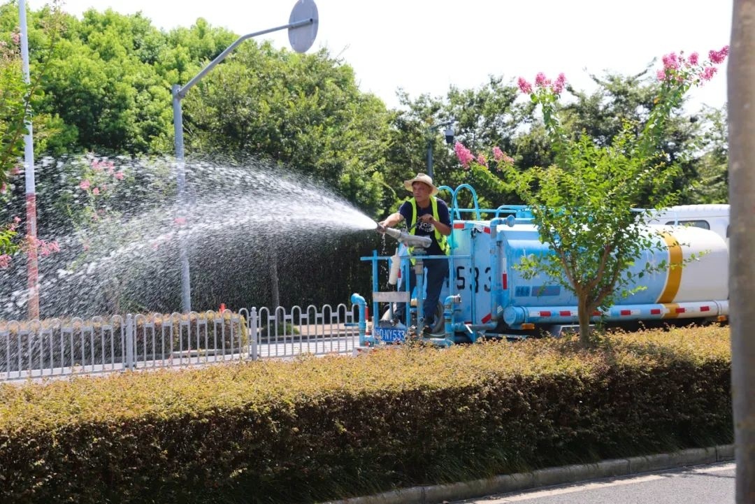 炎炎夏日,金山街头的紫薇、凌霄、夹竹桃都迎来了最佳观赏期,公园里、小区边,道路两侧都开满了夏花。 8月7日,记者在朱泾镇金龙街南侧,看到绿化养护人员正在浇水,由于连日高温,养护人员加大了早晚的浇水频率和浇水量。沿街两侧各色紫薇花开似锦,微风拂过,千姿百态的紫薇花轻轻摇曳,在蓝天的映衬下,恍若云霞。 市民顾琼敏说:“大热天,马路边还有这么多花,很漂亮。我一路散步过来,看到了红花、黄花和白花,和绿叶相互映衬,让人感觉很舒适。” 市民金锡华说:“我们就住在附近的小区,吃过饭出来逛逛,发现这边环境真的很不错,尤其是紫薇花,开得非常漂亮。”