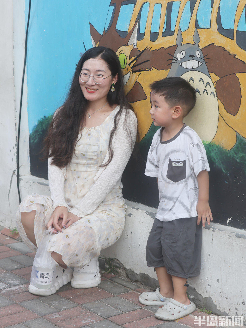 母女俩在漫画街合影