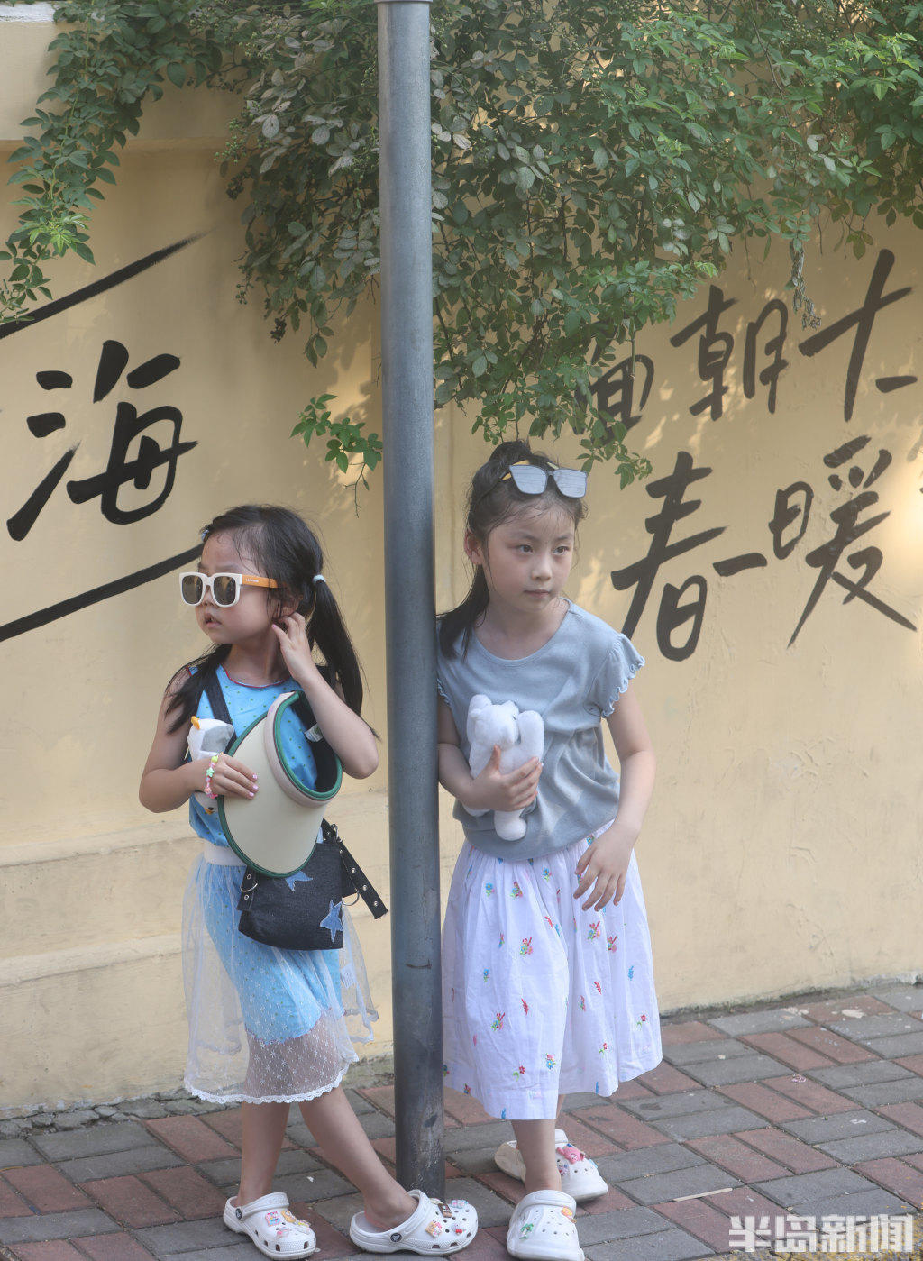 孩子们在漫画街打卡拍照