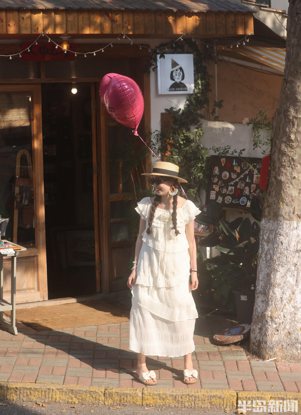 游客在漫画街拍照