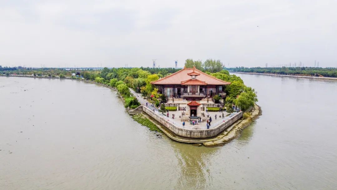 三角洲形状的泖岛宛如一块宝地凸入江中(徐晓彤摄)