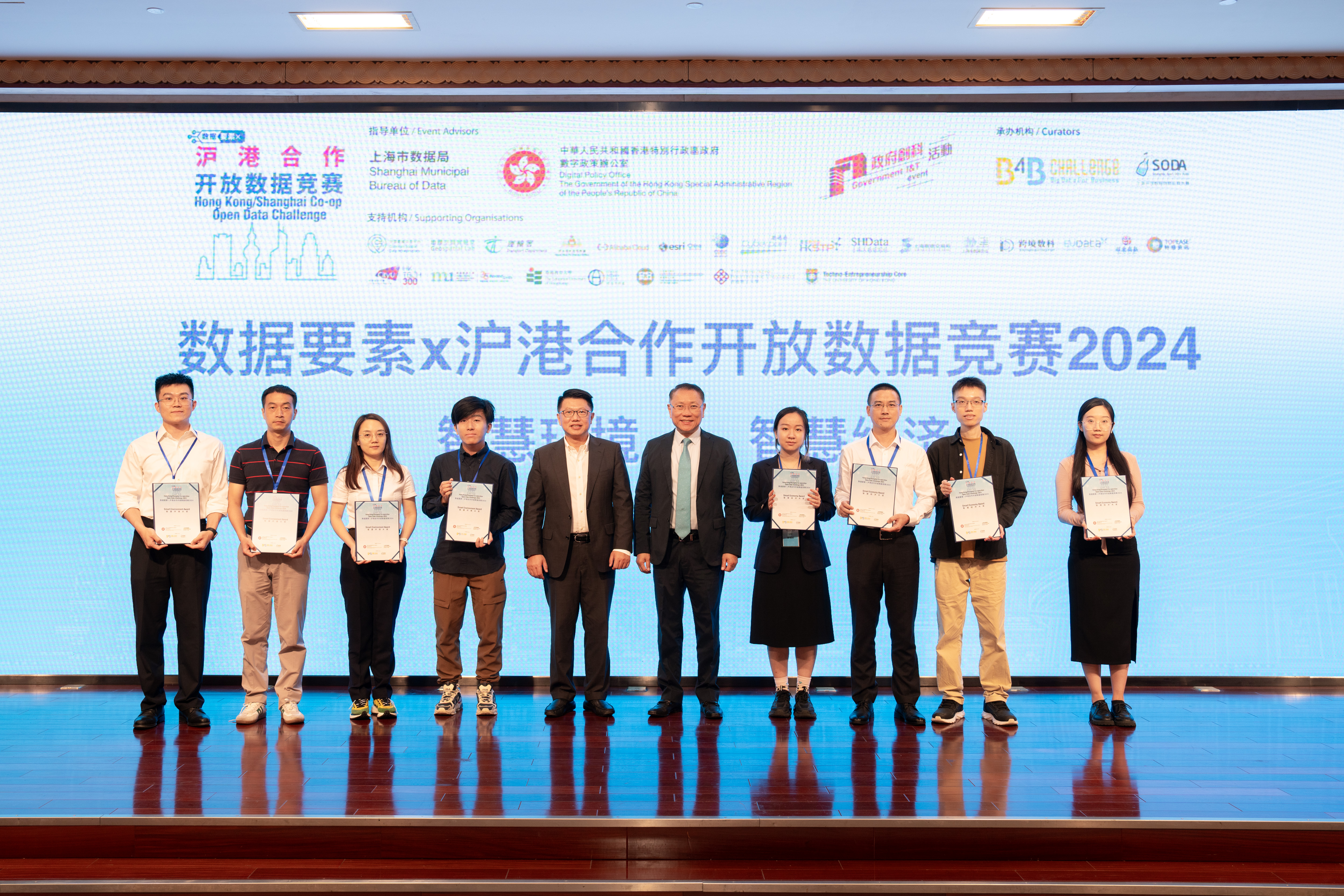 上海市数据局副局长、上海市大数据中心主任邵军,香港特别行政区政府数字政策办公室数字政策专员黄志光,静安区委常委、副区长梅广清等出席活动。来自政府、行业、高校等领域的专家学者、企业代表以及获奖团队代表共聚一堂,共话双城数字经济与实体经济的深度融合。