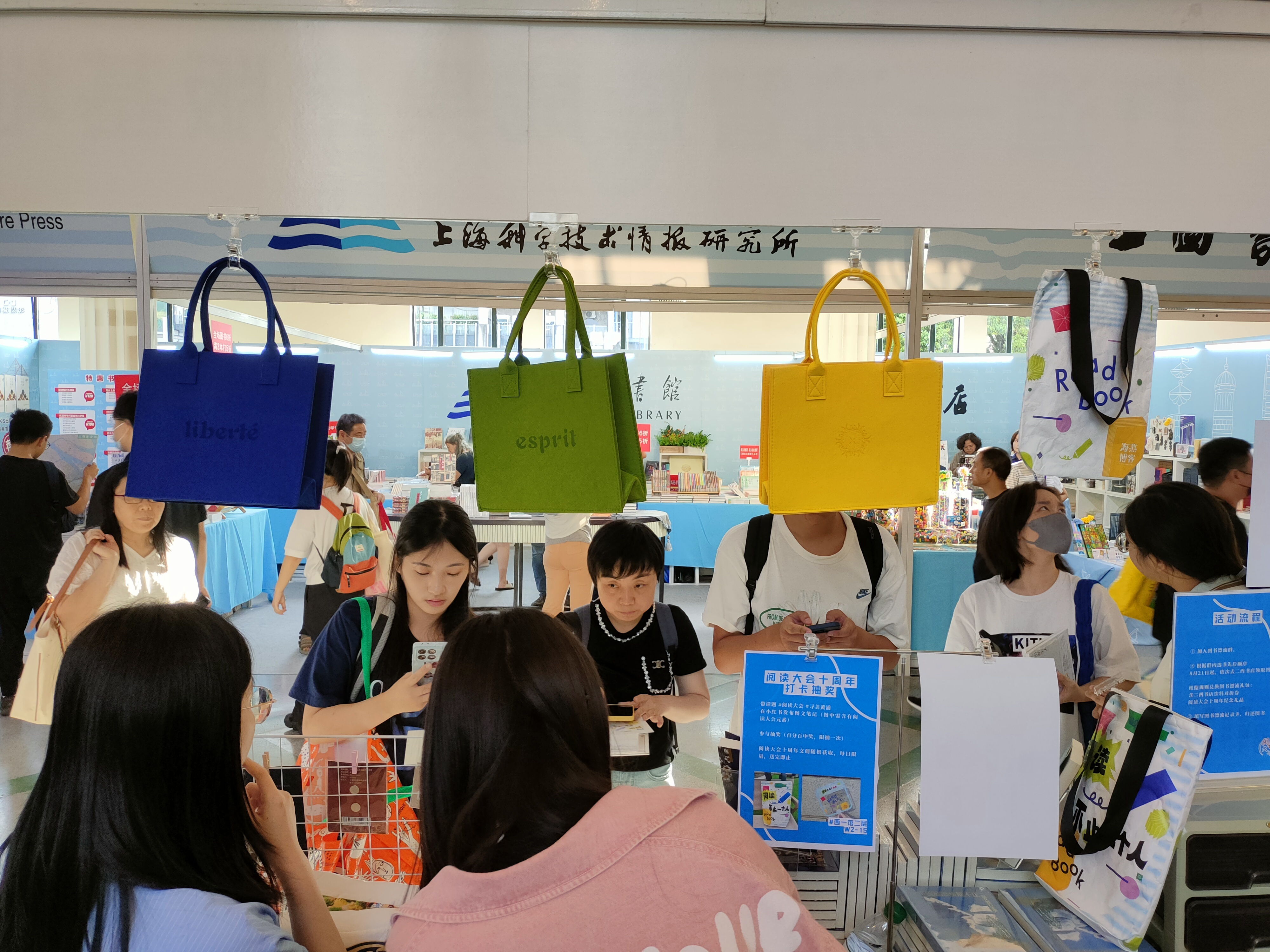记者看到,阅读大会十周年纪念品内容丰富,有“阅读大会”和精选好书纪念章、文创手提包、扇子等,读者们可在现场关注小红书号“阅读大会”“寻美黄浦”,参与笔记打卡,获得一份“阅读大会”纪念章以及抽奖随机获取阅读文创产品。