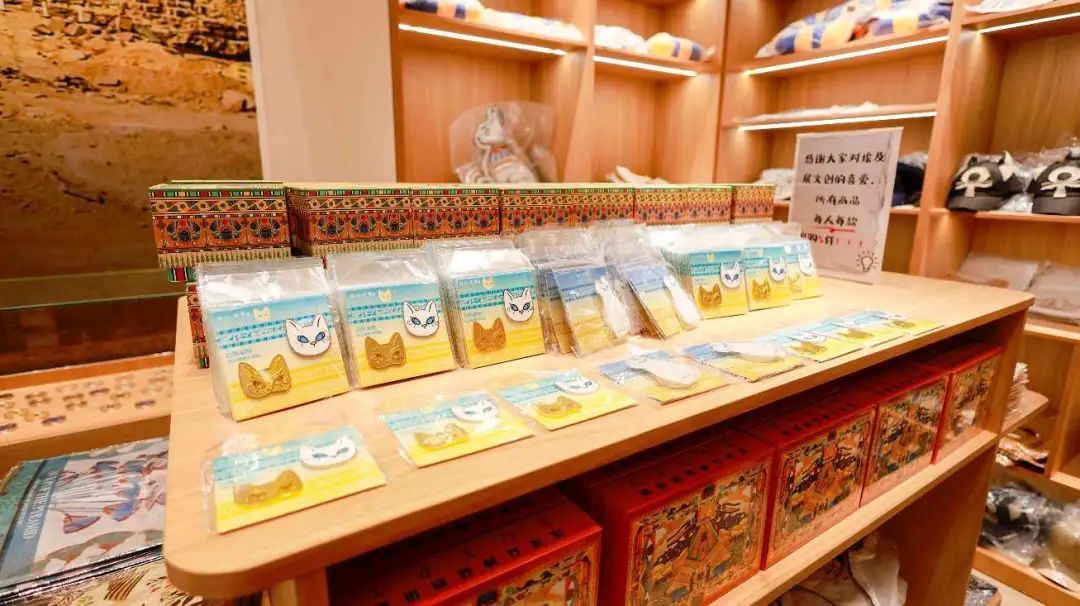 作为上海博物馆有史以来最大规模的特展,上博文创聚焦近百件重点展品元素进行多重文创开发,围绕经典埃及文化元素分主题、季节、节庆等,推出了一系列古埃及大展文创周边产品,首发超过600款,涵盖服饰鞋配、3C数码、生活家居、潮玩摆件、饰品、文具、冷饮等多个品类,满足市民游客的各类需求。其中,许多产品今年夏天火爆出圈,成为线上线下频频断货的“网红周边”。