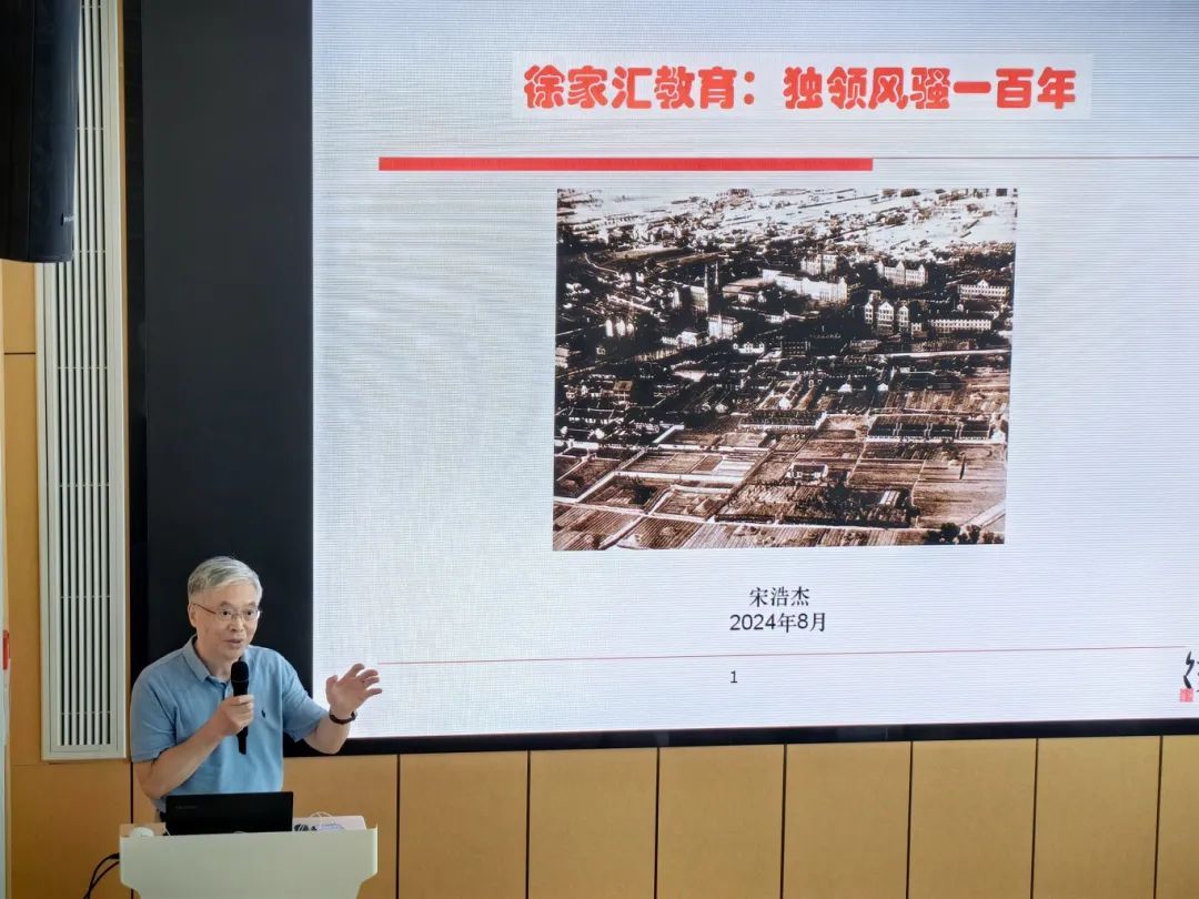 讲座伊始,宋浩杰从徐家汇的百年历史讲起,这个中国近代教育的渊源之地诞生了“西洋办学第一校”徐汇公学、近代大学之母南洋公学,马相伯等人创办的震旦学院、复旦公学也肇端于此。徐家汇百年教育图谱有着鲜明的“新式教育首开先河、教育门类覆盖齐全、新型学科独领风骚、教育质量无出其右”的特点,使徐家汇地区成为近现代培养人才的教学重镇与中心。