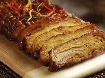 豆腐衣颜色金黄、薄如蝉翼,是制作上海传统美食黄酱包必不可少的原材料,爽滑可口的豆腐衣完美地吸收了肉的香味和鲜味,紧紧贴着鲜肉,令人回味无穷。