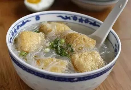油豆腐色泽金黄,内里中空且富有弹性,和细粉一起做汤最相配,吸饱了汤汁的油豆腐柔软又入味,如果用鸡汤做汤底的话更是鲜得眉毛都要掉下来啦!