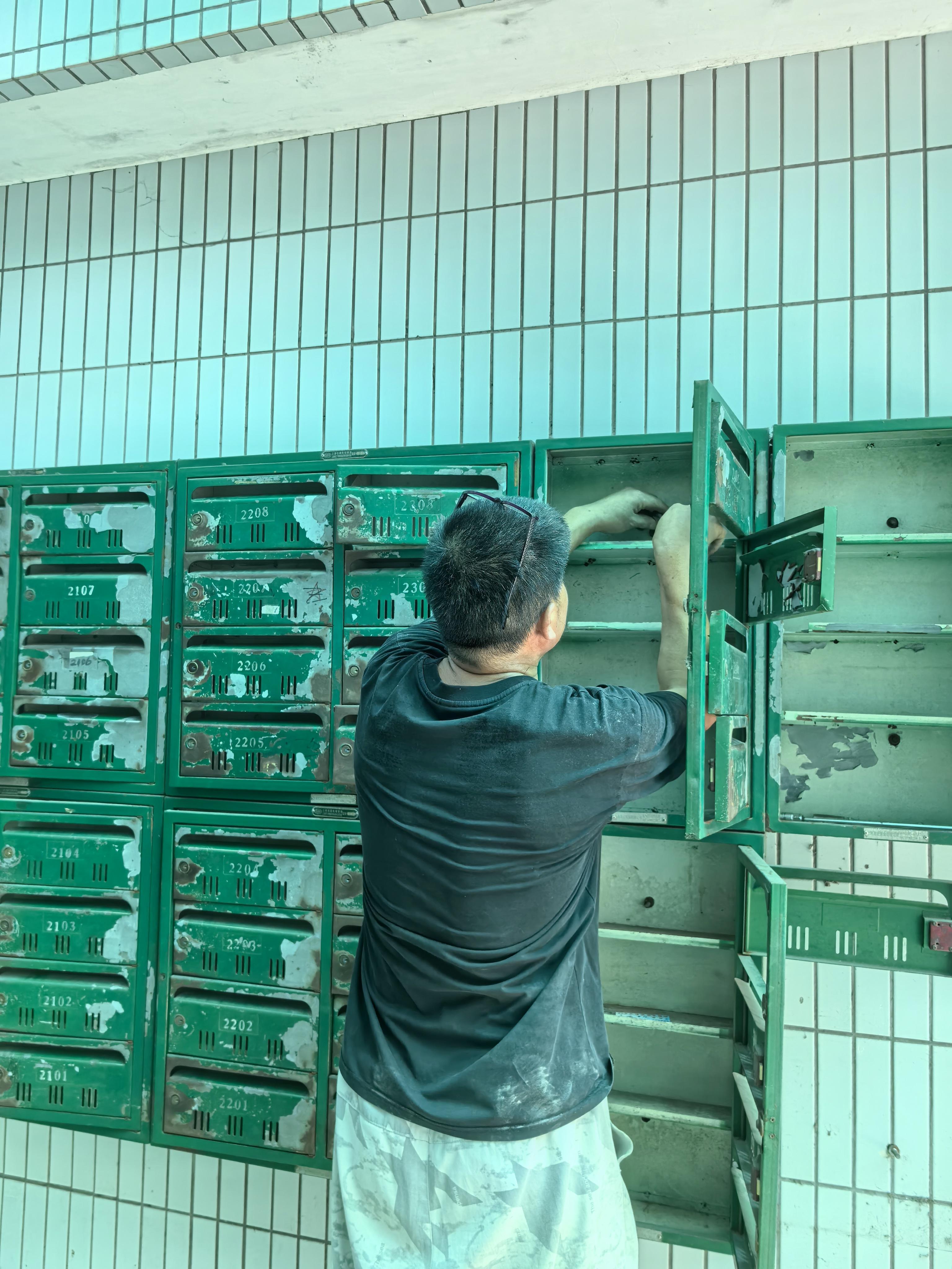 近日,在多位老居民的见证下,来自物业的维修工人免费帮忙拆除旧装置,在通道两侧安装了崭新的信报箱。值得一提的是,本次更新特地增设了公共信箱,专门用于收集居民意见与建议,拓宽民意收集渠道,方便群众“零距离”建言献策。