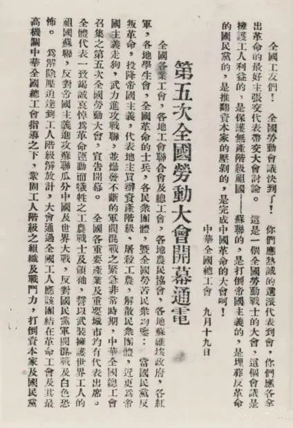 第五次全国劳动大会开幕通电