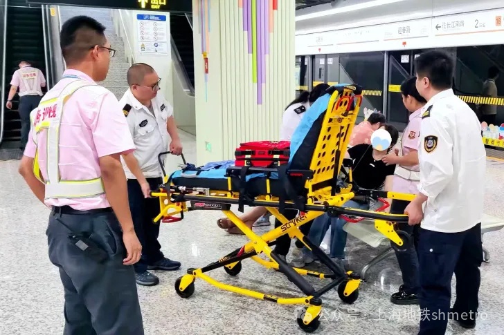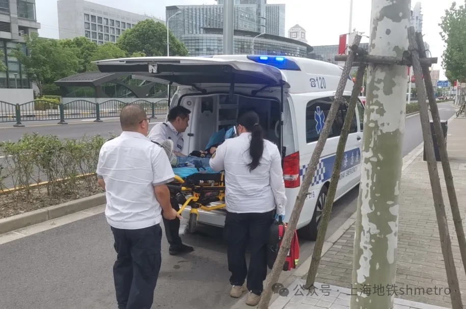 随后,杨帆安排多职能巡视张健至2号口无障碍电梯处接应120救护车。在等待救护车的过程中,杨帆始终在现场陪护乘客、安抚乘客情绪。不久,救护车到达现场,杨帆与120急救人员做好交接后,与乘客家属一同护送乘客离开车站。