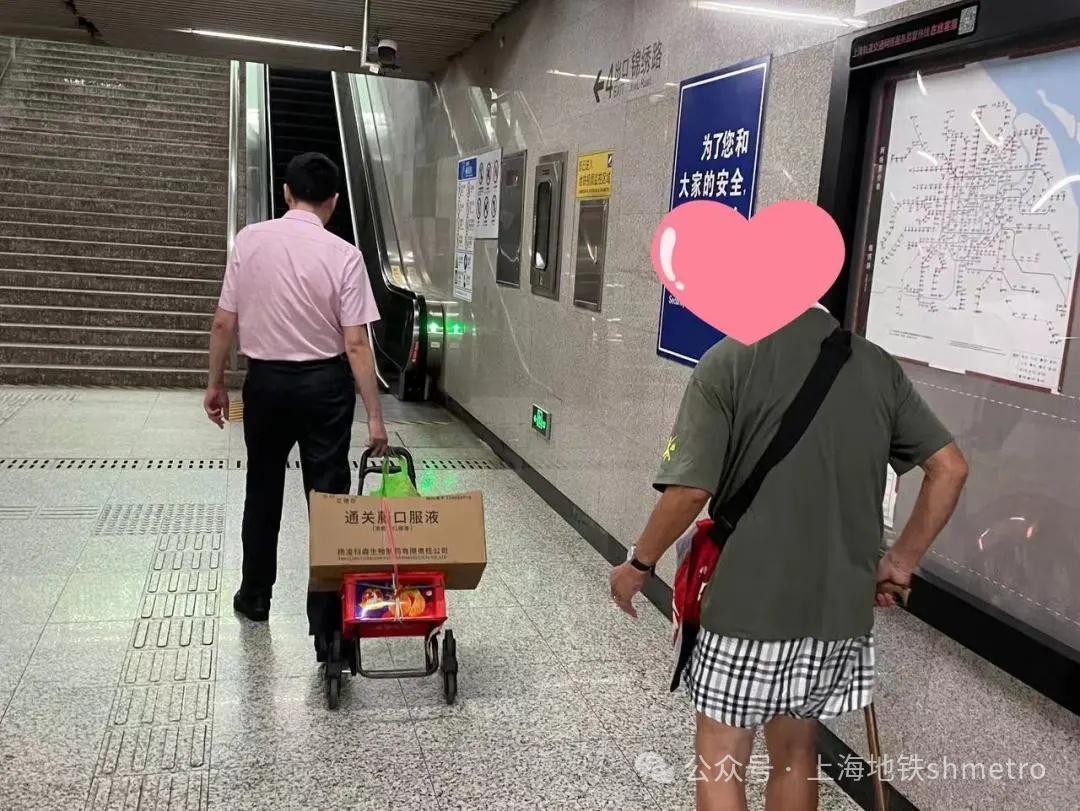 当日,一位老年乘客推着行李,拄着拐杖缓缓走出闸机来到7号线锦绣路站站厅层,值班站长陈华容见老人步履蹒跚立刻上前了解情况,以主动提供服务。据了解,老人刚从医院配药回家,由于暑气太凶所以想稍作休息慢慢走回家去。