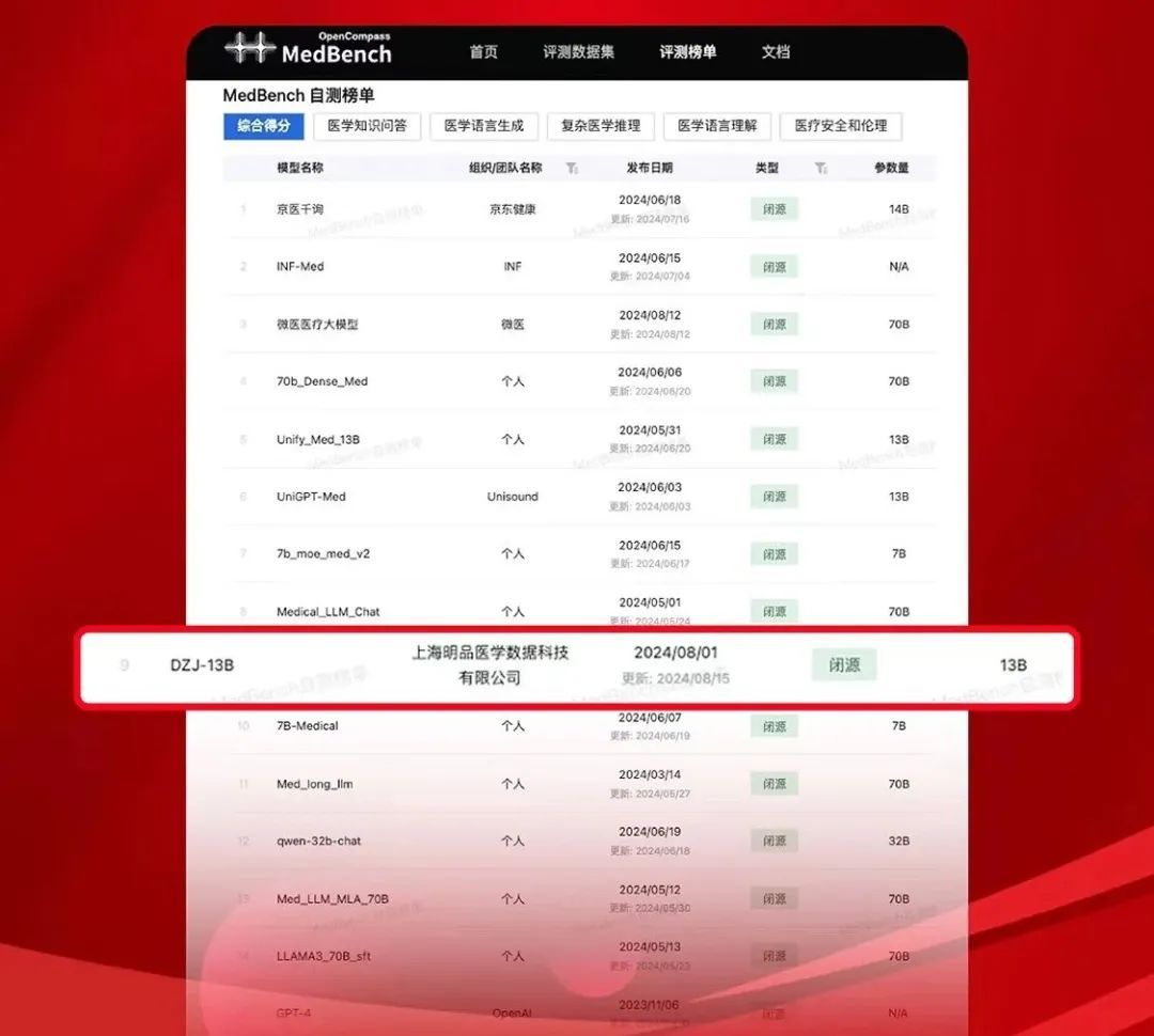 据了解,MedBench是由上海AI实验室和上海市数字医学创新中心推出的权威评测平台,依托顶级医疗机构的专家经验和知识储备,设置了医学语言理解、医学语言生成、医学知识问答、复杂医学推理和医疗安全和伦理等5大维度,共包含15项任务、20个数据集及30万道题目,为中文医疗大模型提供客观科学的性能评测参考。作为医疗领域的专业评测基准,Medbench已加入司南大模型开源开放评测体系(opencompass)。自发布以来,Medbench已为387个医疗大模型提供了评测。