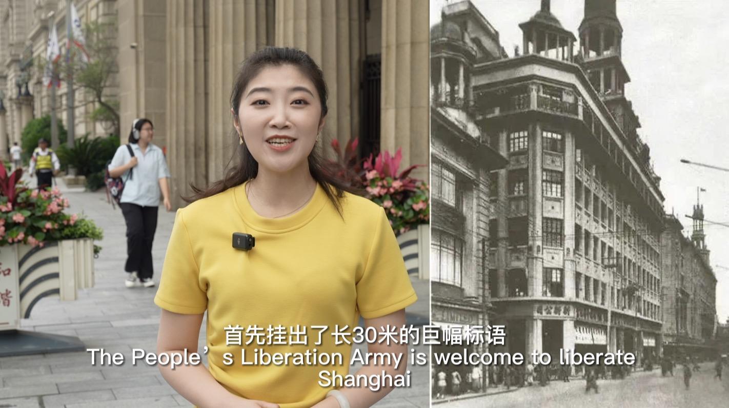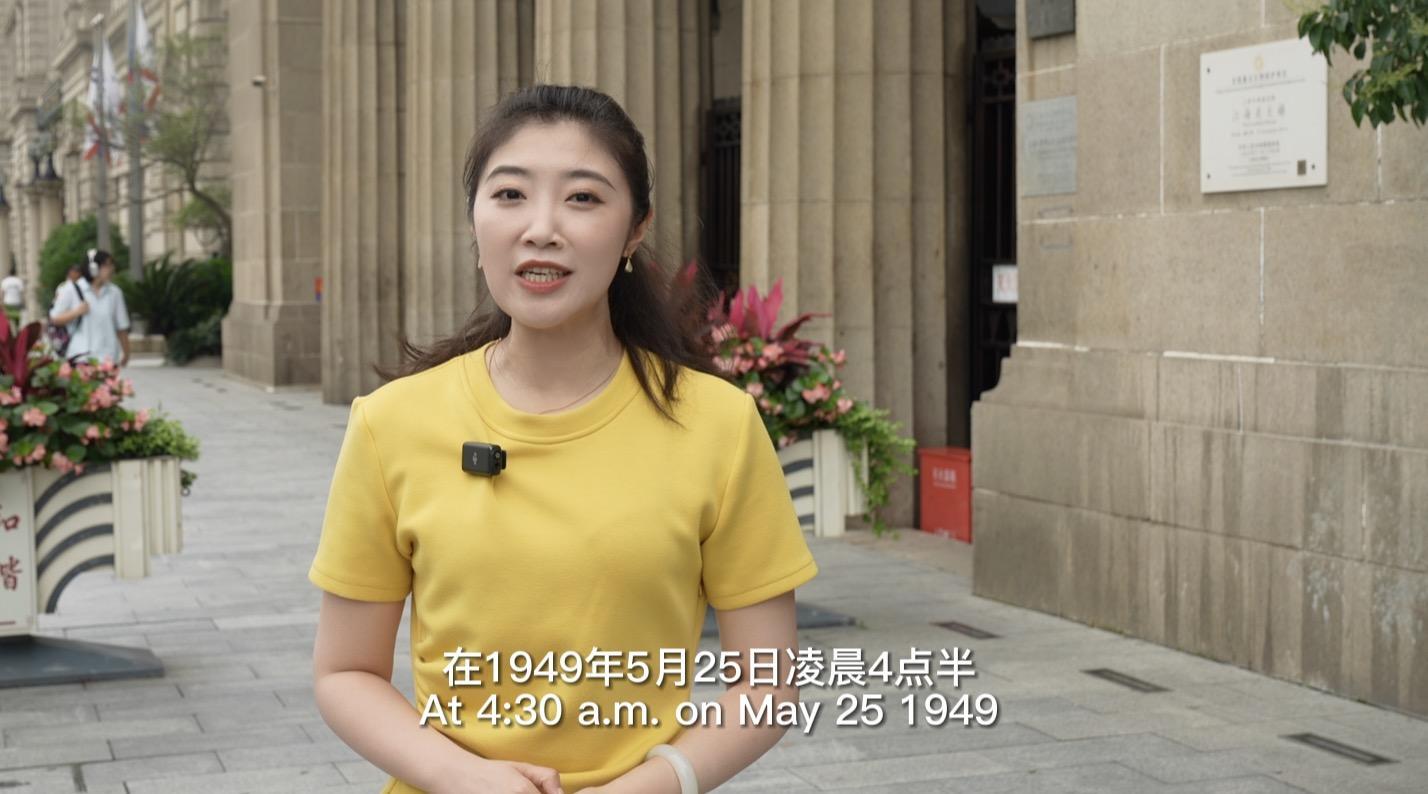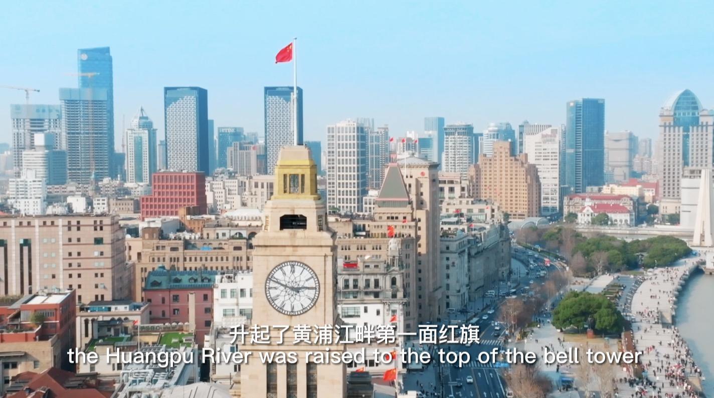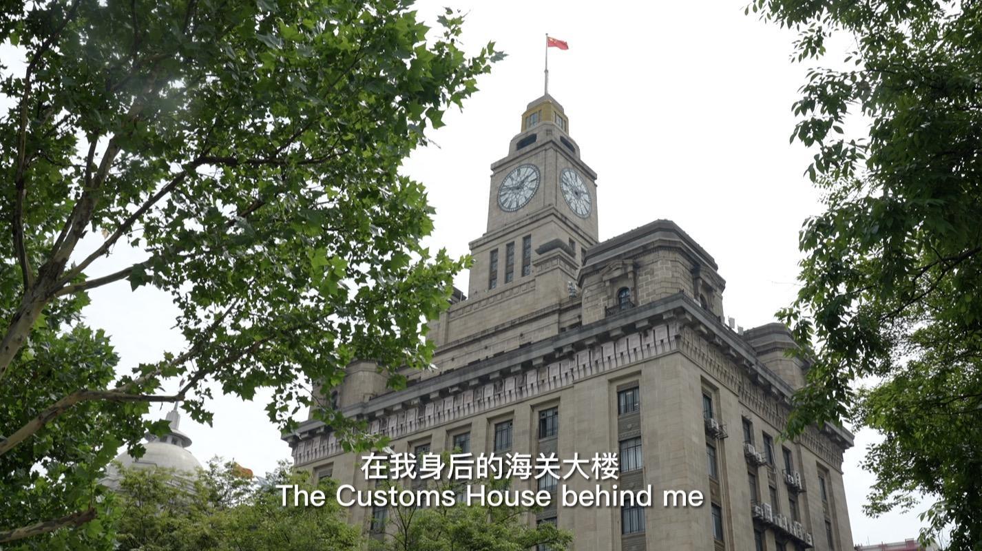 在我身后的海关大楼,原名叫作江海关大楼,曾经是解放上海的前沿阵地。在1949年5月25日凌晨四点半,江海关大楼首先挂出了长30米的巨幅标语:“欢迎人民解放军解放大上海。”并在钟楼的顶端升起了黄浦江畔第一面红旗,浦江两岸视野内的水上船户和陆上居民都可以看到。随后市军管会代表接管了江海关,失落了90多年的国门钥匙——海关管理权,终于回到了我们中国人民的手里。
