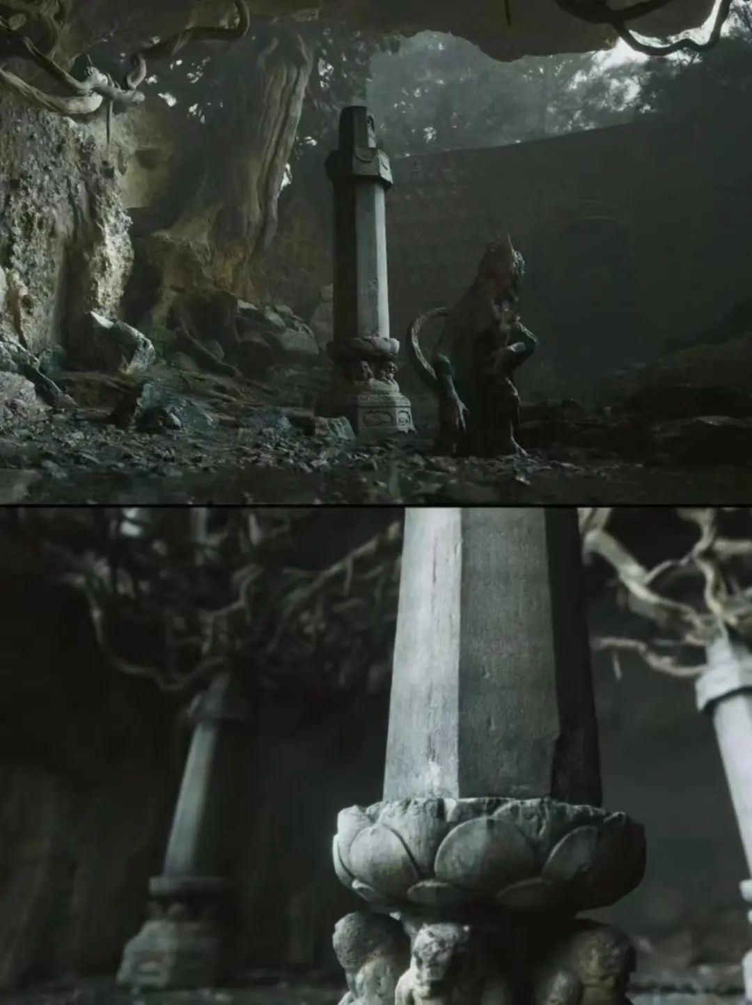 △上为游戏场景,下为五台山佛光寺唐大中经幢,图片源自山西文化和旅游厅。