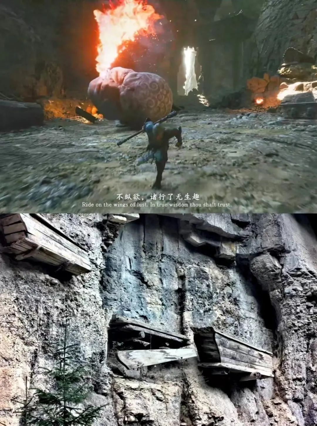 △上为游戏场景,下为宁武石门悬棺,图片源自山西文化和旅游厅。