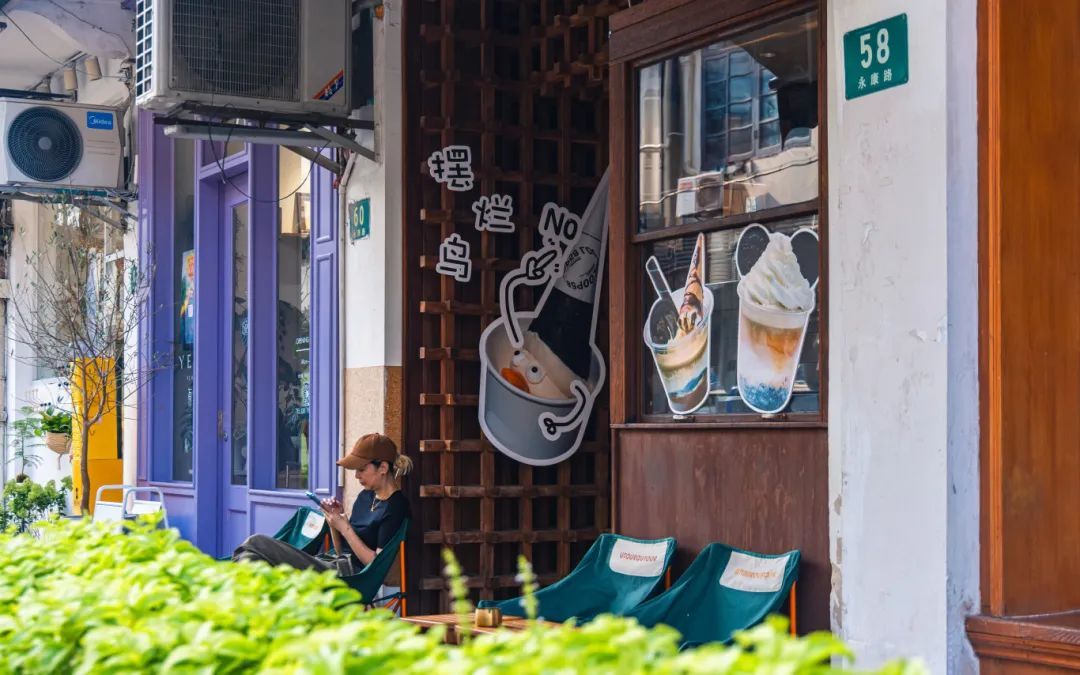 除了咖啡店云集之外,短短几百米的永康路上也有很多特色小店。冰淇淋、中式茶饮、brunch、古着……不同元素就这样无比和谐地共存于这条马路上。