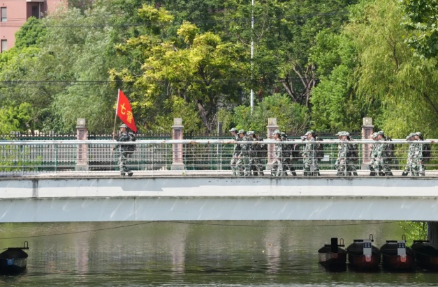 在齐步正步的号令下,同学们穿过一幢幢独具一格的楼宇,激情与汗水交织,欢笑与鼓励陪伴。这是一场体力和意志的考验,是一次团结合作的旅程,这一路,教官、辅导员老师们陪伴着同学们,为大家加油打气、保驾护航。