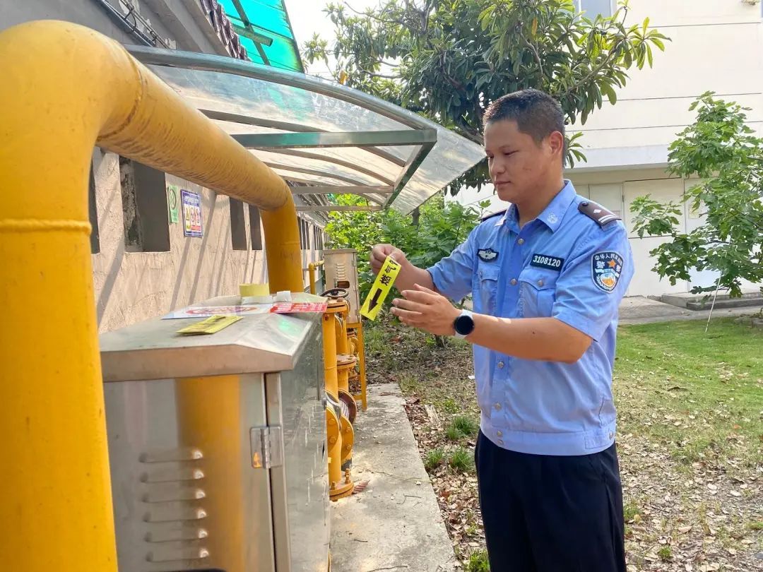 未成年犯管教所内,民警李麟不畏高温,对燃气管道及消防设施进行全面细致检查,并逐一张贴安全标识,以实际行动筑牢安全防线。