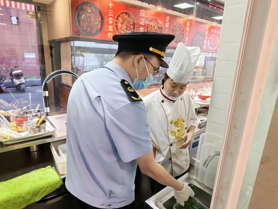 为保障市民食品安全,共和新路市场监管所积极行动,针对夏季消费聚集的美食街开展夜间联合巡查,利用夜宵时段深入延长中路片区多家龙虾店、烧烤店进行突击检查,进一步规范烧烤店的经营行为。