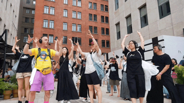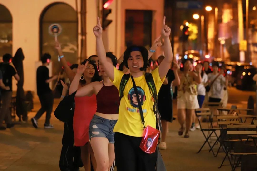 不同肤色、不同年龄、不同背景的观众戴上统一的发光耳机,在Silent Guide的带领下,伴随音乐律动,100%沉浸在这场街头劲舞之中。此时此刻的快乐无需理由,欢迎进入全新的迪斯科世界!
