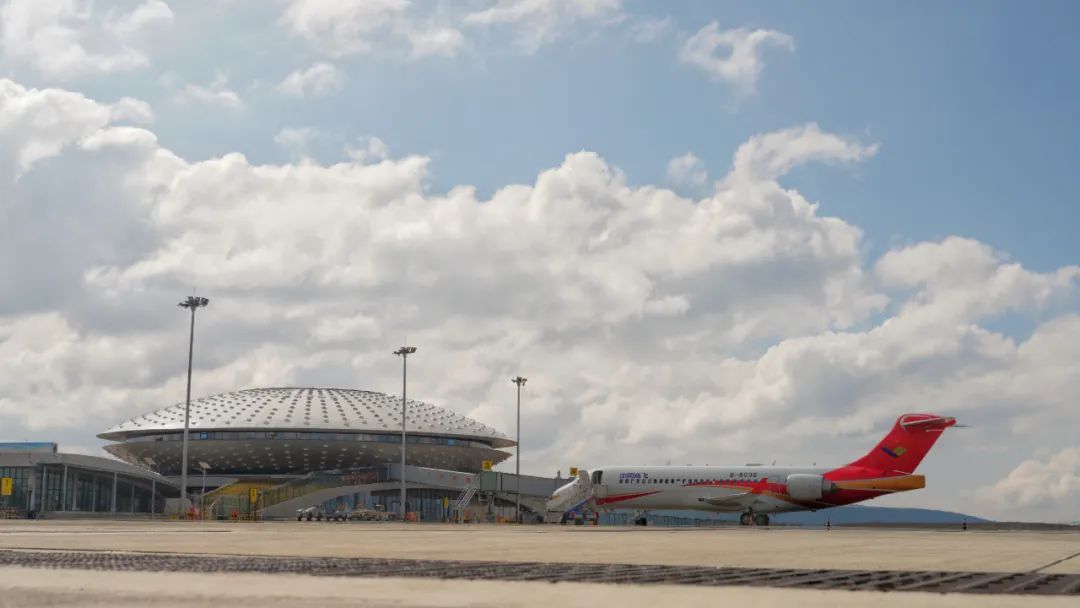 稻城亚丁机场位于四川省甘孜藏族自治州稻城县桑堆乡海子山,海拔高度4411米,是目前世界上海拔最高的民用机场。2020年7月,ARJ21飞机曾飞抵该机场,开展为期15天的试验试飞,完成了最大起降高度扩展试验和试飞工作,验证了ARJ21飞机在高高原机场环境下的起降能力。中国商飞公司始终坚持以客户为中心,持续为客户创造价值,在充分保证机型共通性的前提下,通过适应性改装和设计优化,不断提升ARJ21飞机高原运行性能,让ARJ21飞机全面满足高海拔机场运行要求。