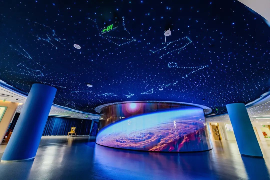 记者了解到,中托普陀园区以“科技创新”为主题,基于科学理念,开展对科技创新人才早期培育的探索实践。走廊上的LED“巨幕鱼缸”、一闪一闪的星空穹顶、沉浸式全息投影“森林”……园区里的每一处,都能轻易勾起幼儿们的好奇心和探索欲,培养婴幼儿好奇提问、善于思考、敢于创造的学习品质。