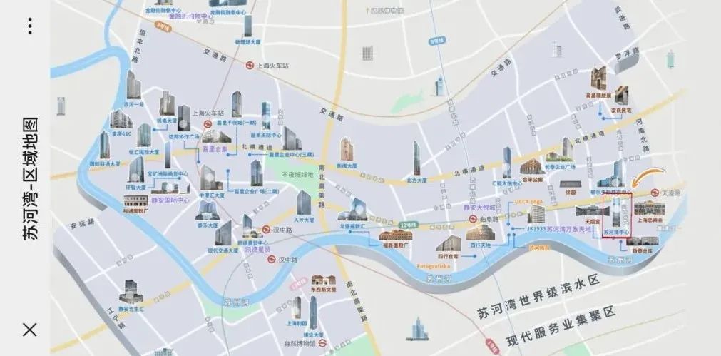 近日,苏河湾公众号发布了升级版的苏河湾区域楼宇地图!