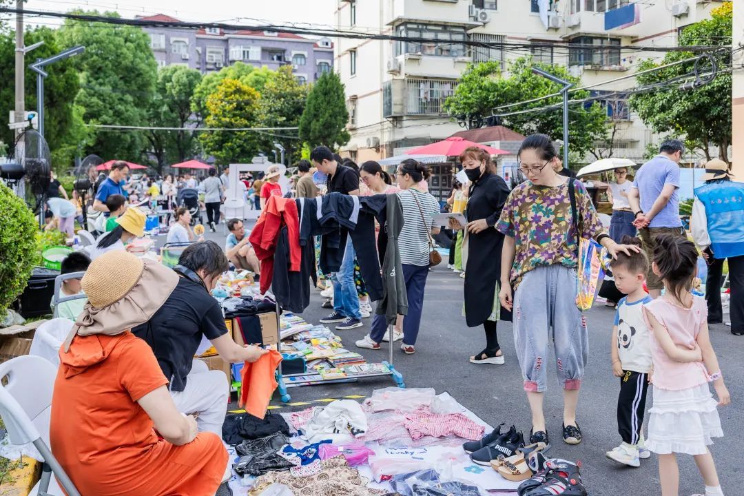 夜幕降落前,一场融合了青少年环保教育的公益闲置集市唤醒了夏日的活力与色彩。50位居民摊主陆续来到古美社区,将家中闲置的书籍、衣物、小家电、儿童玩具等宝贝悉数摆上摊位。小摊主们更是别出心裁,通过创意标语和手绘海报传递着环保的重要性,热情洋溢地向过往的居民介绍着每一件物品。
