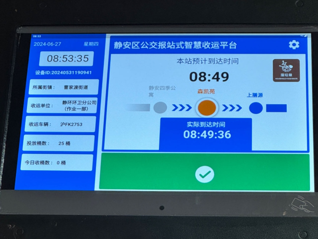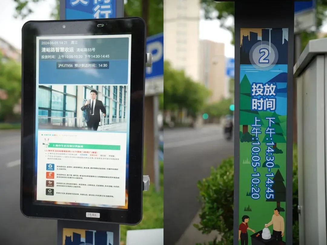 静安区结合区域特点,推出干垃圾、湿垃圾、餐厨垃圾三条“生活垃圾清运公交站牌式精准报时示范线路”。保洁员通过查看安装在垃圾箱房醒目位置的“垃圾清运精准报时”显示屏或者手机短信息推送,可以实时查看垃圾车预计到达时间,实现清运信息预报的精准度和透明度。