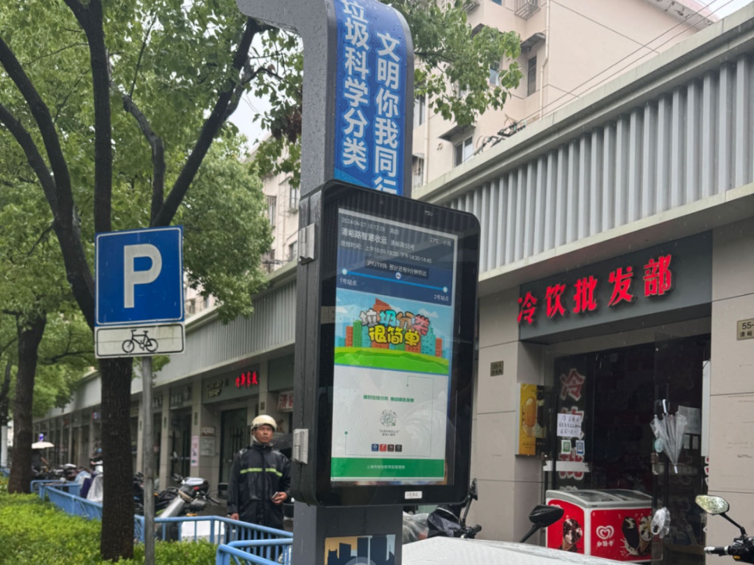 公交站牌式屏窗兼具宣传内容播放功能,既能提醒商户按时交付生活垃圾,又能在街面向社会公众宣传“垃圾分类就是新时尚”的绿色低碳生活理念。
