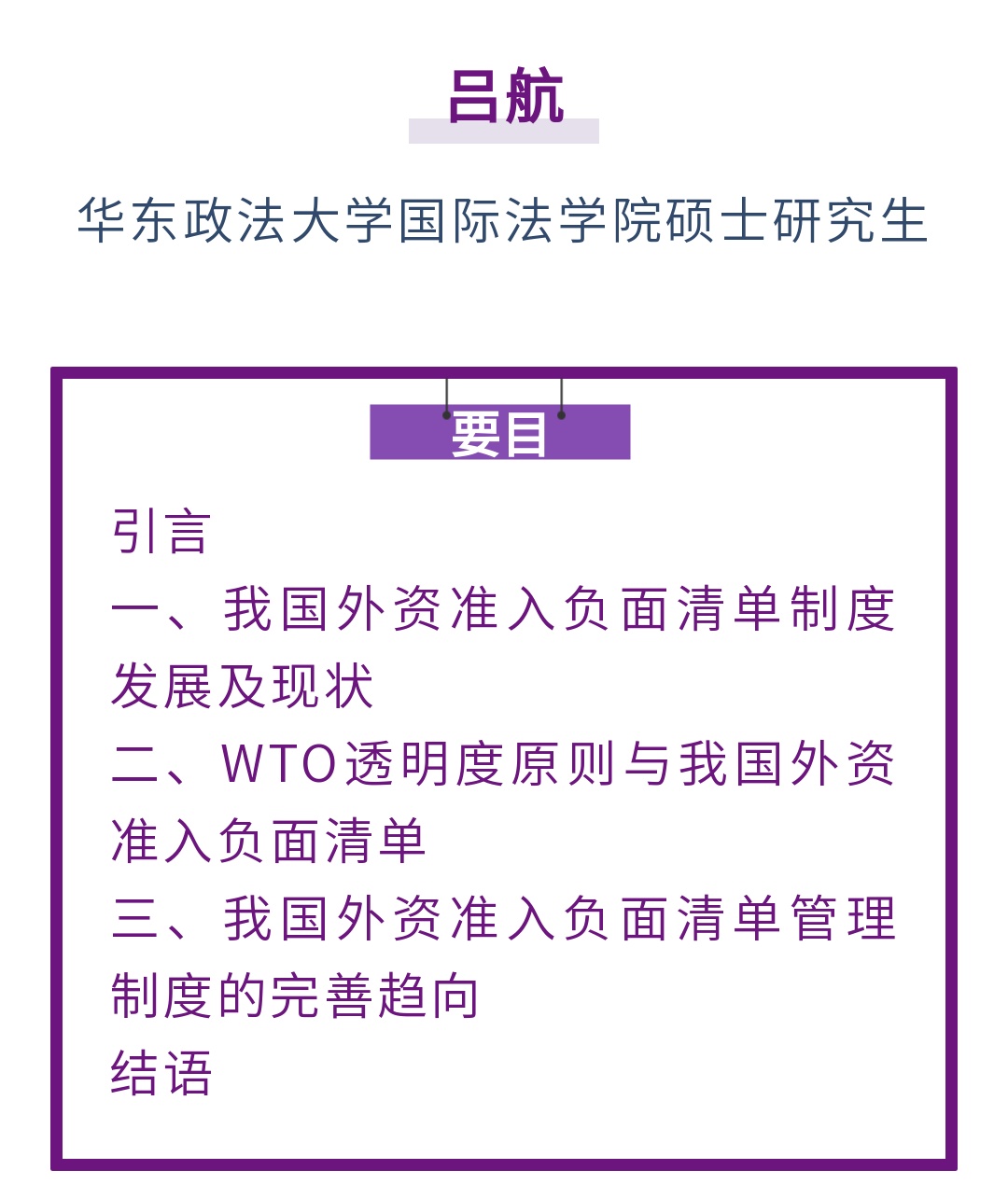起源于国际贸易领域的透明度原则,在世界贸易组织(以下简称WTO)及其主导订立的多个国际经贸协定的带动下,已经成为国际贸易领域的基本行动准则,并不断深入至国际投资等其他国际经济领域的国际协定之中。未经公布的法律和文件不得实施,已经逐渐成为各国在国际经济领域的共识。深入理解国际投资领域透明度原则的适用,不仅有利于我国对相关国际投资或经贸协定义务的全面履行,也将有利于进一步厘清我国外资准入负面清单制度的内在逻辑。也正因此,本文将从WTO透明度原则出发,尝试分析我国外资准入负面清单制度的深层理论基础,并试图为我国外资准入负面清单制度的完善提供优化思路。