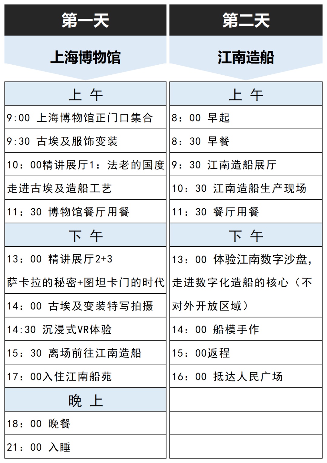 备注:营期两天内容或有可能视实际情况对调,即有可能先江南后上博,以群通知为准。第二天接送时间和地点不变!
