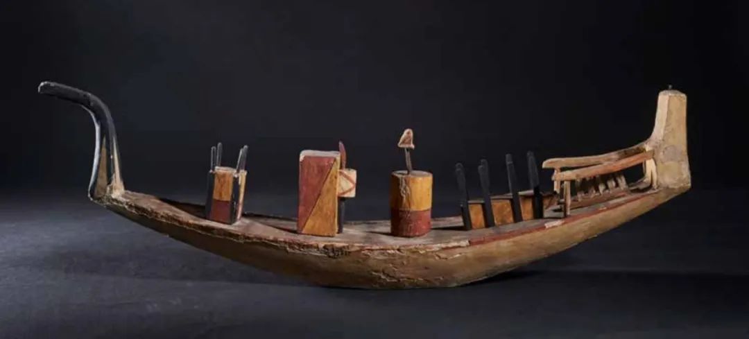 这艘太阳船模型保存相对完好,中央有桅杆和座位,两根这艘太阳船模型保存相对完好,中央有桅杆和座位,两根残柱上有隼鹰,船身可见代表“追随”的象形文字。太阳船被古埃及人称之为曼杰特,与拉神密不可分。