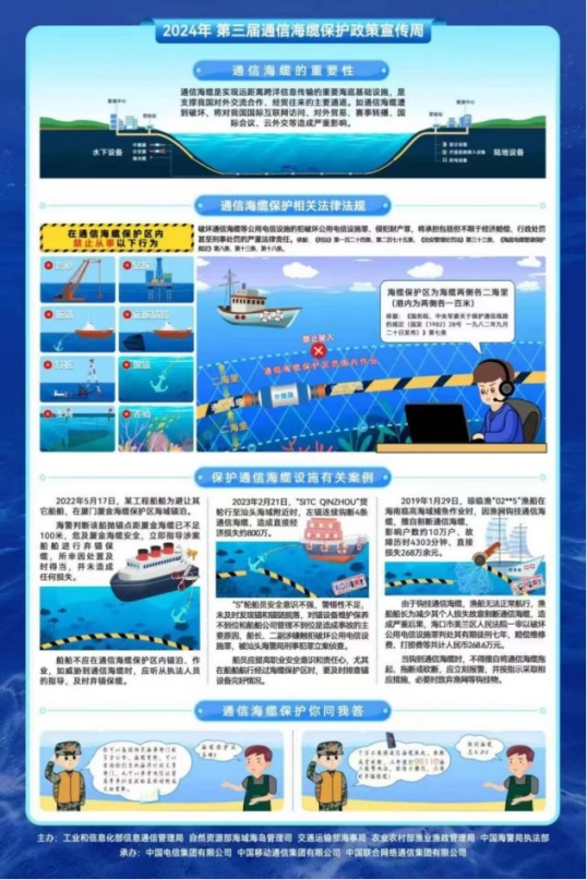 2024年8月26日至30日为第三届通信海缆保护宣传周,本次宣传周以“人人参与、人人有责”为主题,通信海缆保护,奉贤海警在行动!