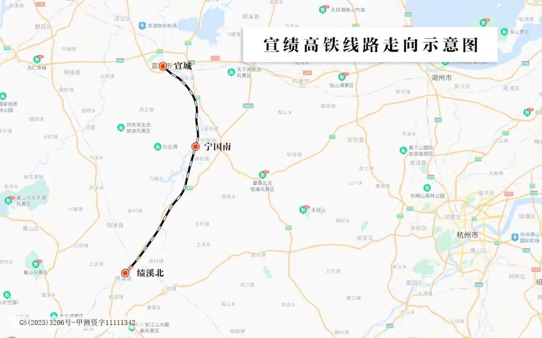 宣绩高铁位于安徽省南部,线路起自合杭高铁宣城站,经由宣城市宣州区、宁国市、绩溪县,终至绩溪北站,新建正线全长111.6公里,设计时速350公里,共设宣城、宁国南、绩溪北3座车站,其中宁国南站为新建车站。