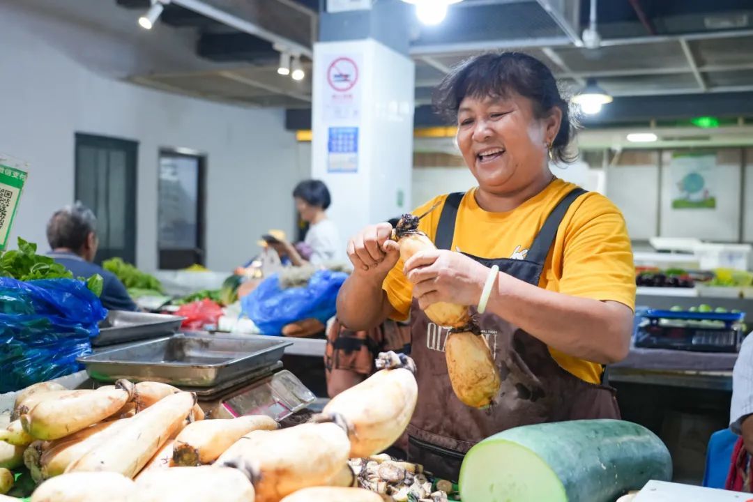 春季荸荠夏时藕,秋末茨菇冬芹菜。三到十月茭白鲜,水生四季有蔬菜。伏天过后,天气开始转凉,“水八仙”陆续上市,在奉贤区柘林菜场,多个菜摊上都能看到莲藕、茨菇、菱角的身影。不少市民在逛菜场时,纷纷被这些带有水乡特色的时鲜吸引驻足。