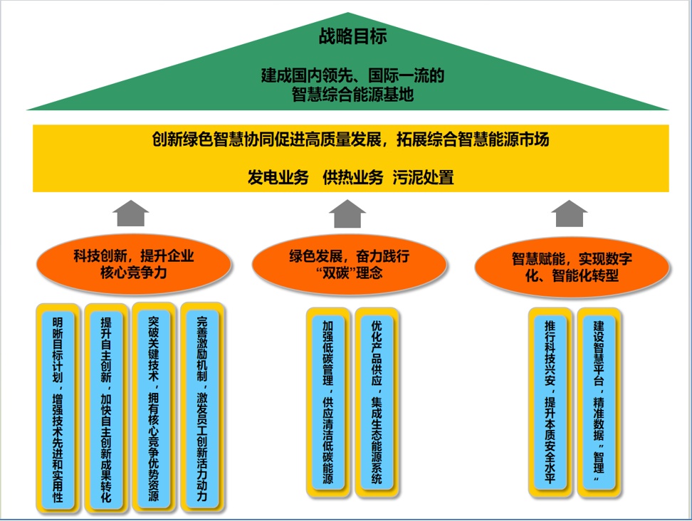 面对深化能源体制机制改革,作为火电企业寻找适合自身发展的高质量发展的“双碳”路径就尤为重要。漕泾电厂以“建成国内领先、国际一流的智慧综合能源基地”为战略目标,在火电企业原有的管理模式基础上,紧扣“科技创新、绿色发展、智慧赋能”三大主题,通过夯实科技创新机制,持续推进发电运行向绿色低碳转变,积极拓展智能化、数字化建设的方式,以发展新质生产力为根本目标,以拓展综合能源市场为主线,通过培育技术创新发展的环境;积极实施绿色低碳节能减排措施;利用智能化手段挖掘更多的节能潜力,以达到进一步实现循环经济,促进生态文明建设,推动产业绿色发展,最终成就高质量发展的智慧综合能源企业的目的。