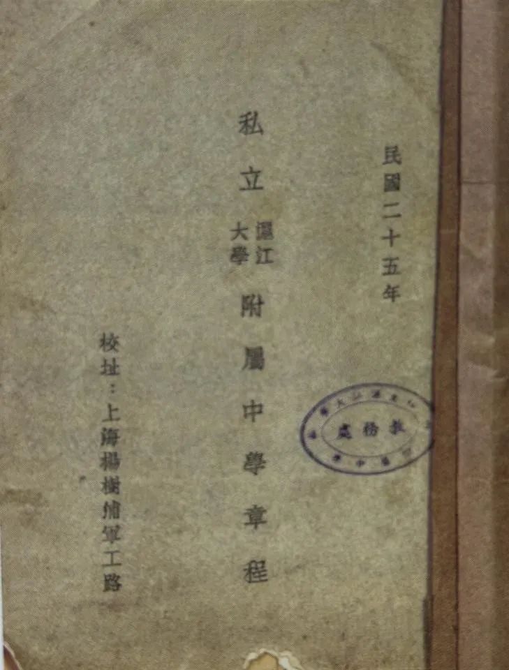 ▲《私立沪江大学附属中学章程》(1936年)(现藏于虹口区档案馆)