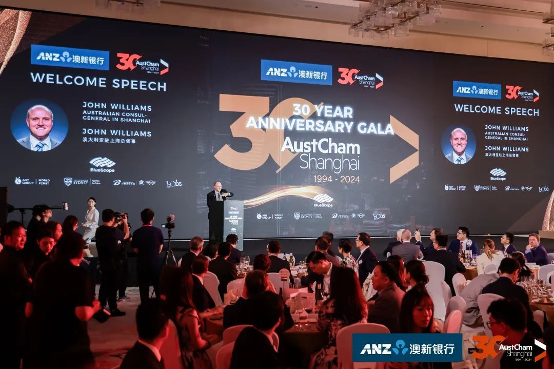8月29日,澳大利亚商会-上海30周年庆典在沪举办。澳大利亚驻沪总领事张威廉(John Williams)、澳大利亚商会-上海董事会主席杜海蒂(Heidi Dugan)、澳大利亚商会-上海首席执行官兼执行董事林世文(Simon Woods)等出席庆典并致辞,澳大利亚驻华大使吉思德(Scott Dewar)、澳大利亚贸易和旅游部长兼特别国务部长唐·法雷尔(Don Farrell)等嘉宾视频致辞。市商务委副主任诸旖,浦东新区区委常委、常务副区长杨朝,虹桥国际中央商务区管委会副主任张斌,松江区副区长陈容等领导应邀出席,来自上海、江苏、浙江等长三角地区的政府部门、外国商会和投资促进机构、中外企业代表等450位嘉宾参加活动。