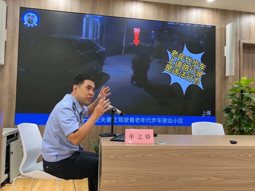 “送餐再忙,安全莫忘”“不戴安全头盔、逆向行驶、骑车打电话都是非常危险的违法行为”“希望大家坚决摒弃交通陋习,切勿拿生命安全‘抢单’”……静安交警一堂安全教育课,通过一位“外卖小哥”系紧交通“安全带”。