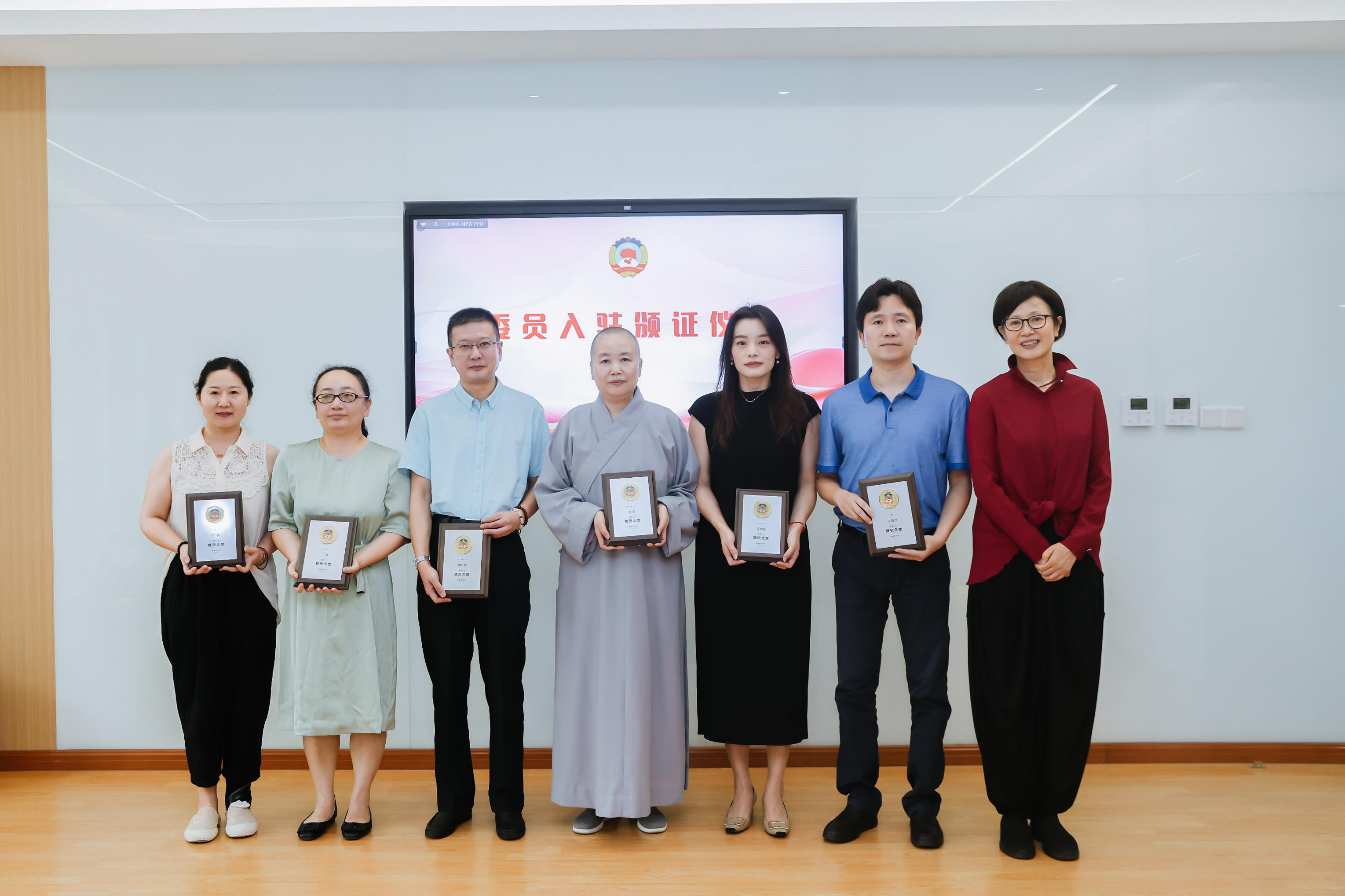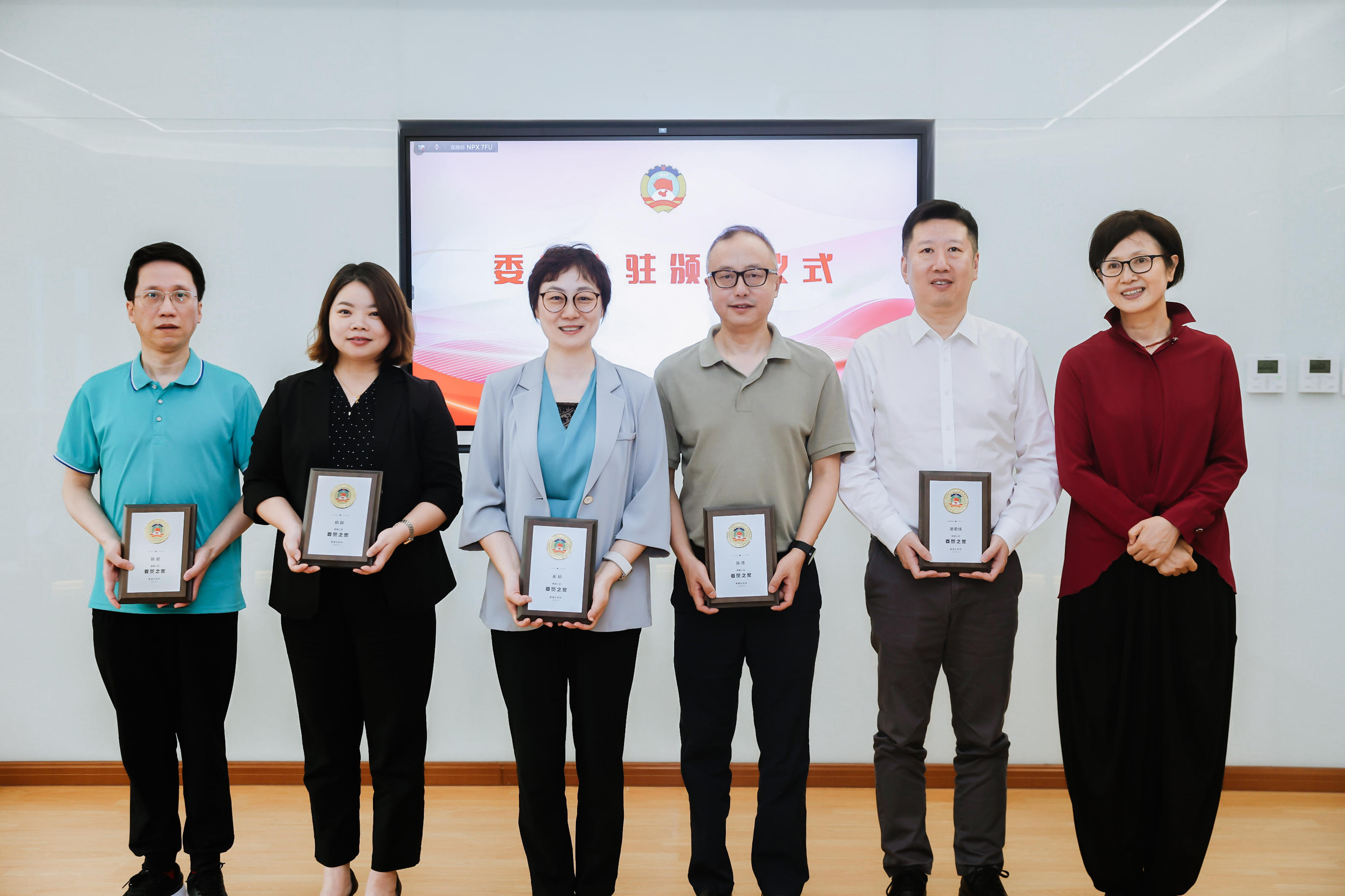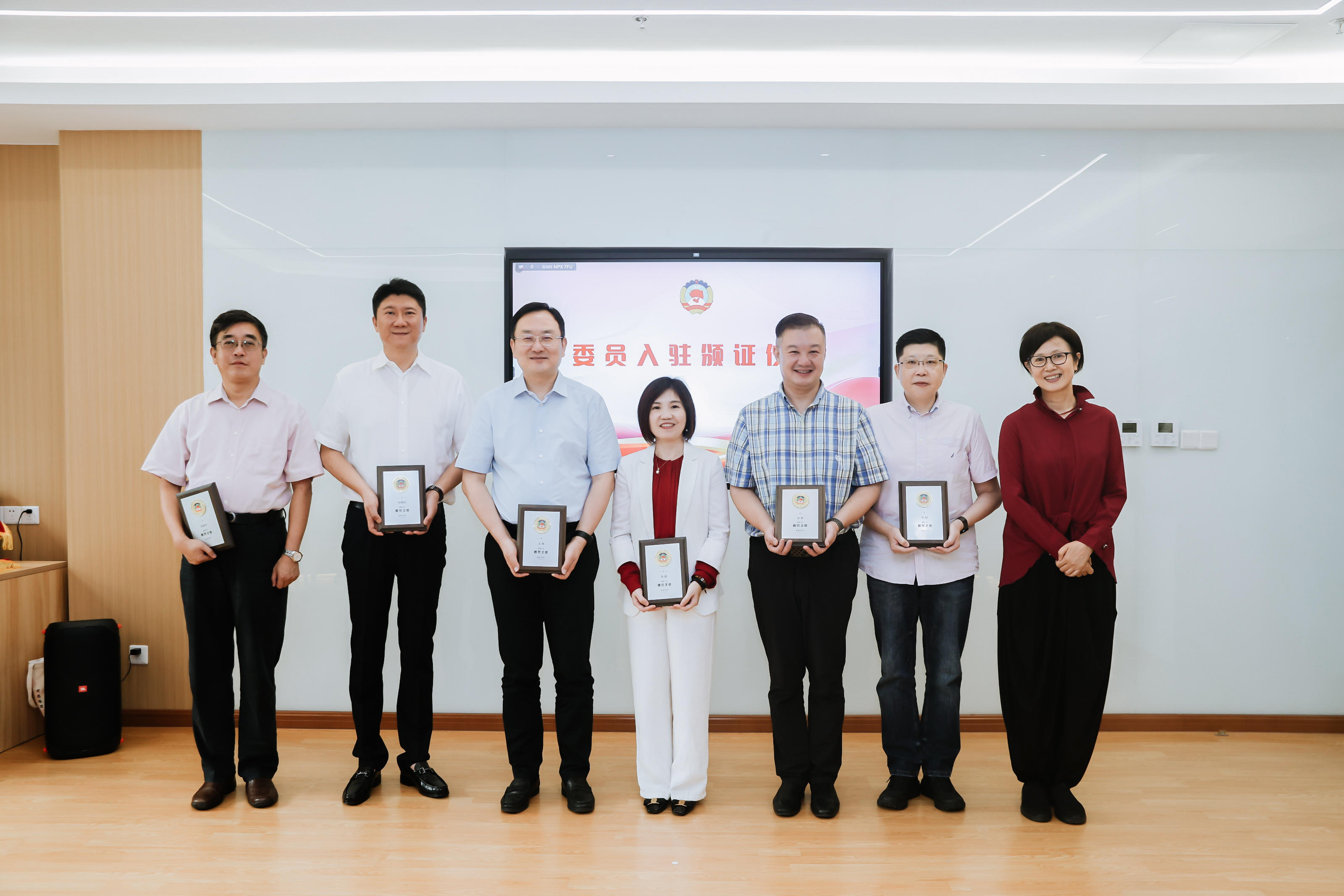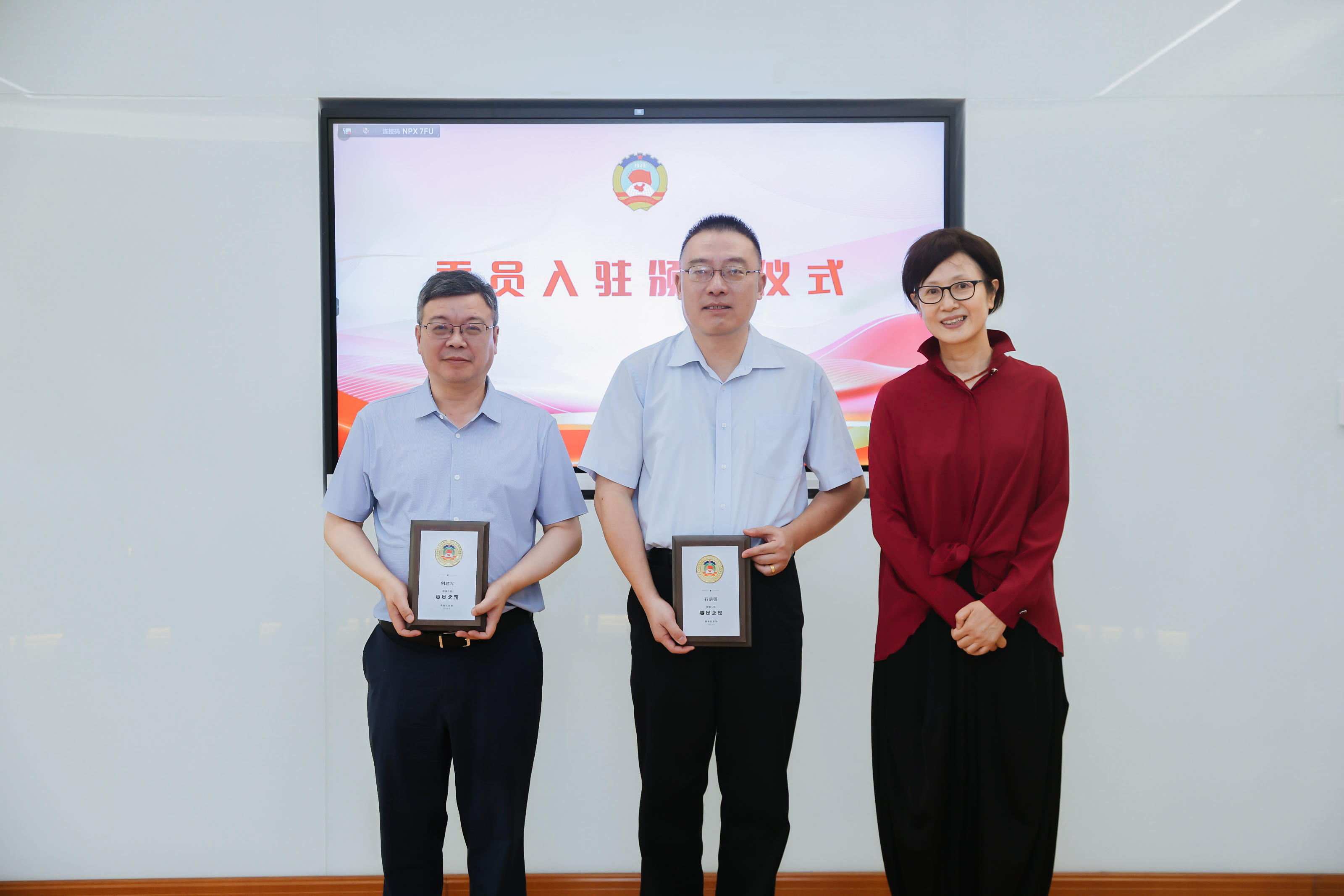 黄浦区政协副主席李原为首批入驻“委员之家”的委员颁发证书。