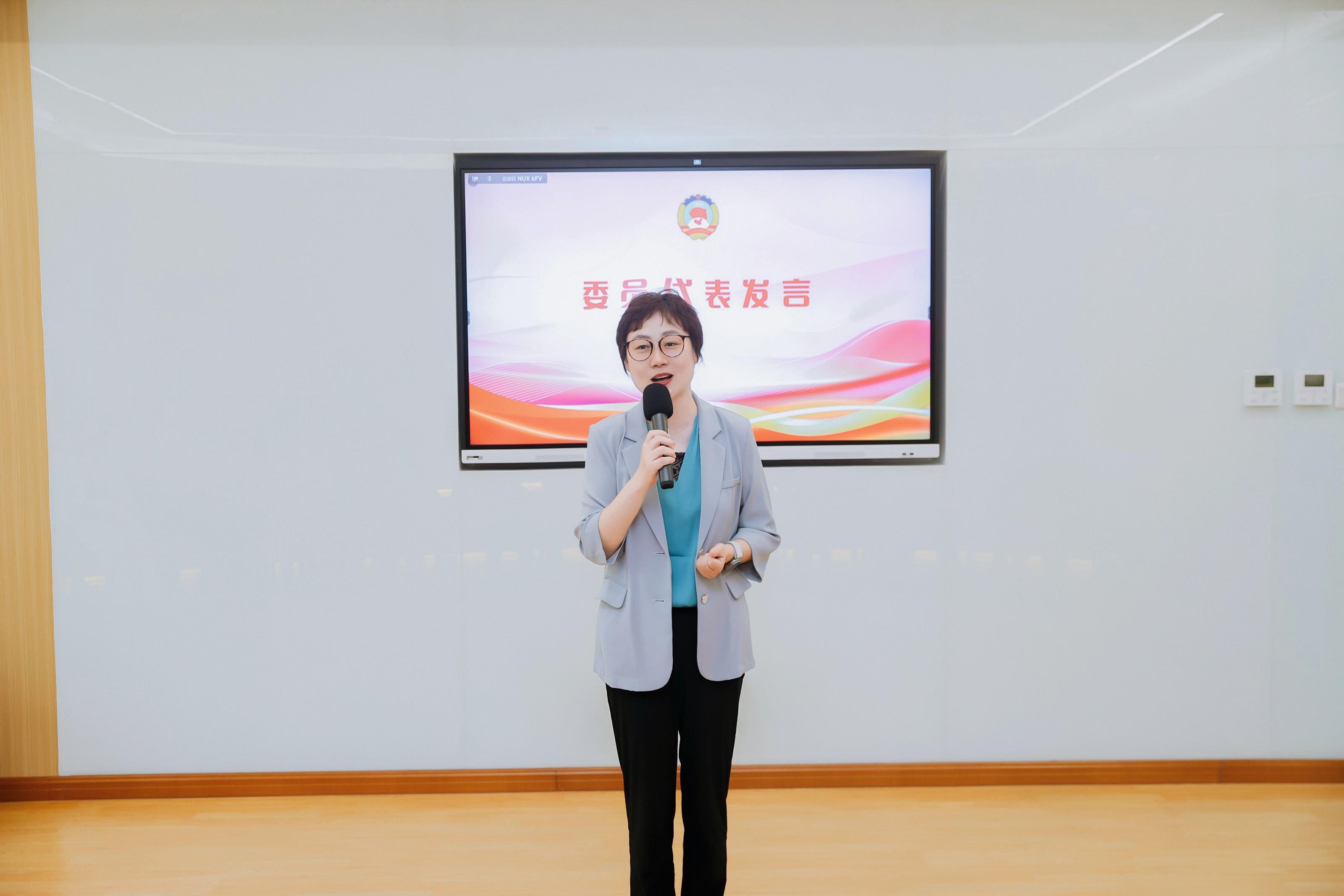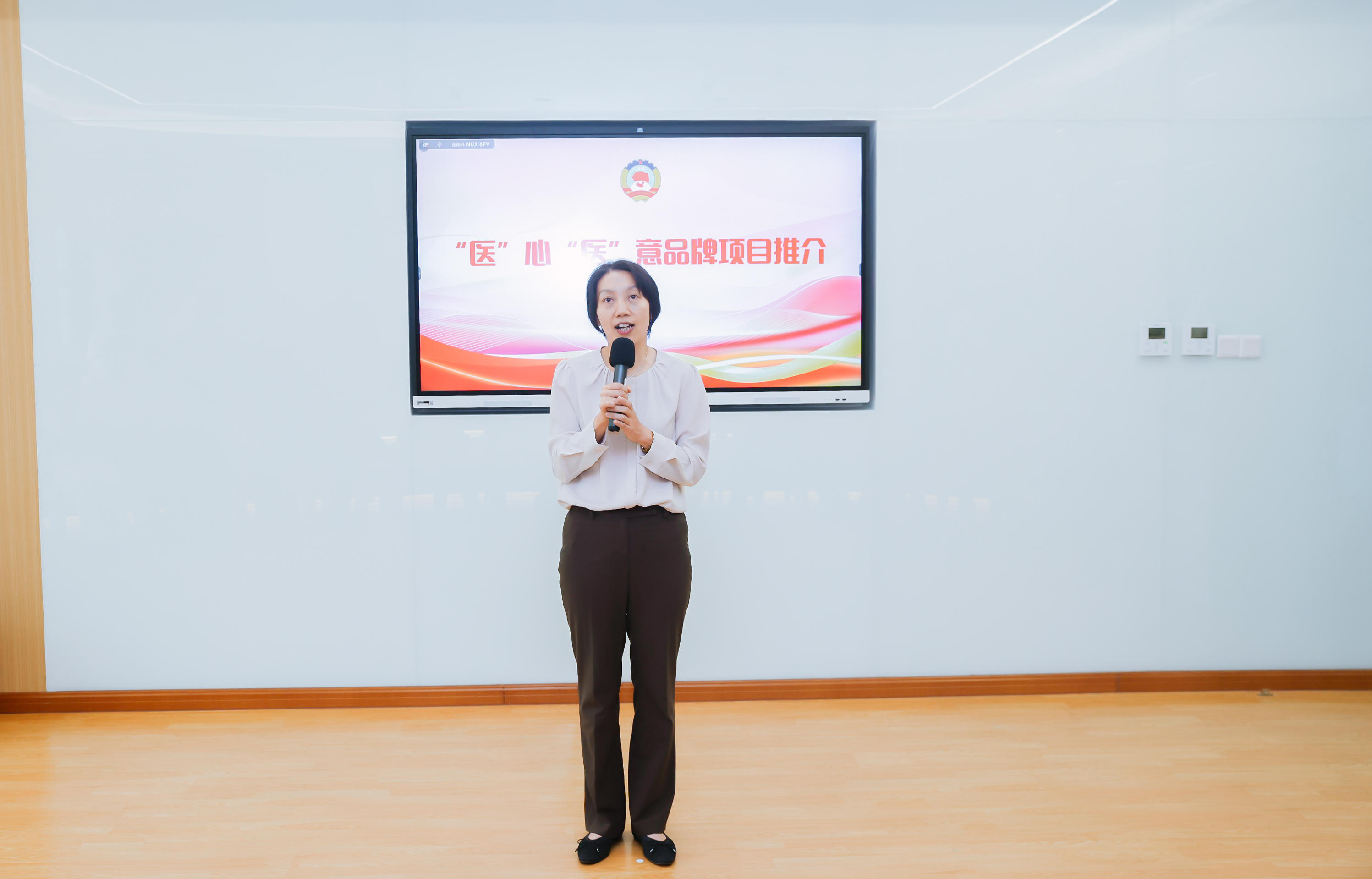 黄浦区卫生健康党工委书记潘韫洁介绍“医”心“医”意品牌项目,为更好地提升群众健康获得感,共同探索医疗健康服务的新路径。