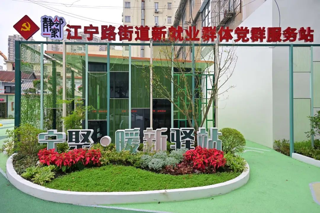 在江宁路街道,服务于新就业群体的空间越来越多,新成立的“暖新驿站”和街道党群服务中心、各类居民区、楼宇园区和网格党群服务站、“新心驿站”等共同构成了密织的党建网络,让快递、外卖小哥们深切感受到城市的温度。